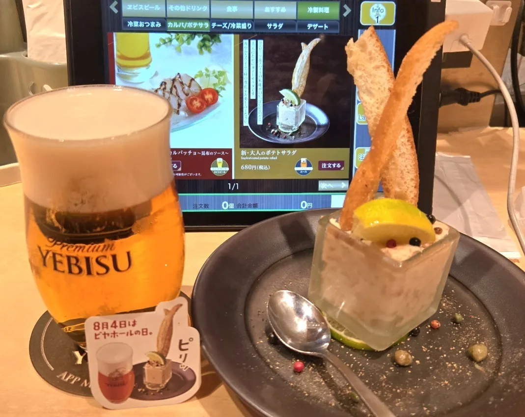 8枚目はヱビスバー、新・大人のポテトサラダとエール🍺