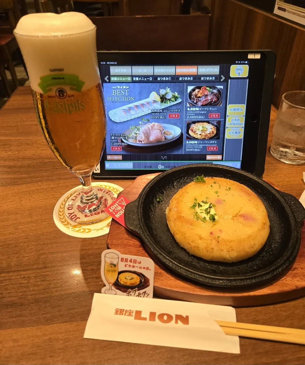 4枚目は銀座ライオン、ジャーマンポテトとエーデルピルス🍺