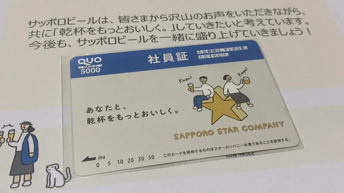 サッポロ愛が足りない私はスタカン❣️ になれませんね 社員証はクオカードなんですね 確かに使えば穴開きますね