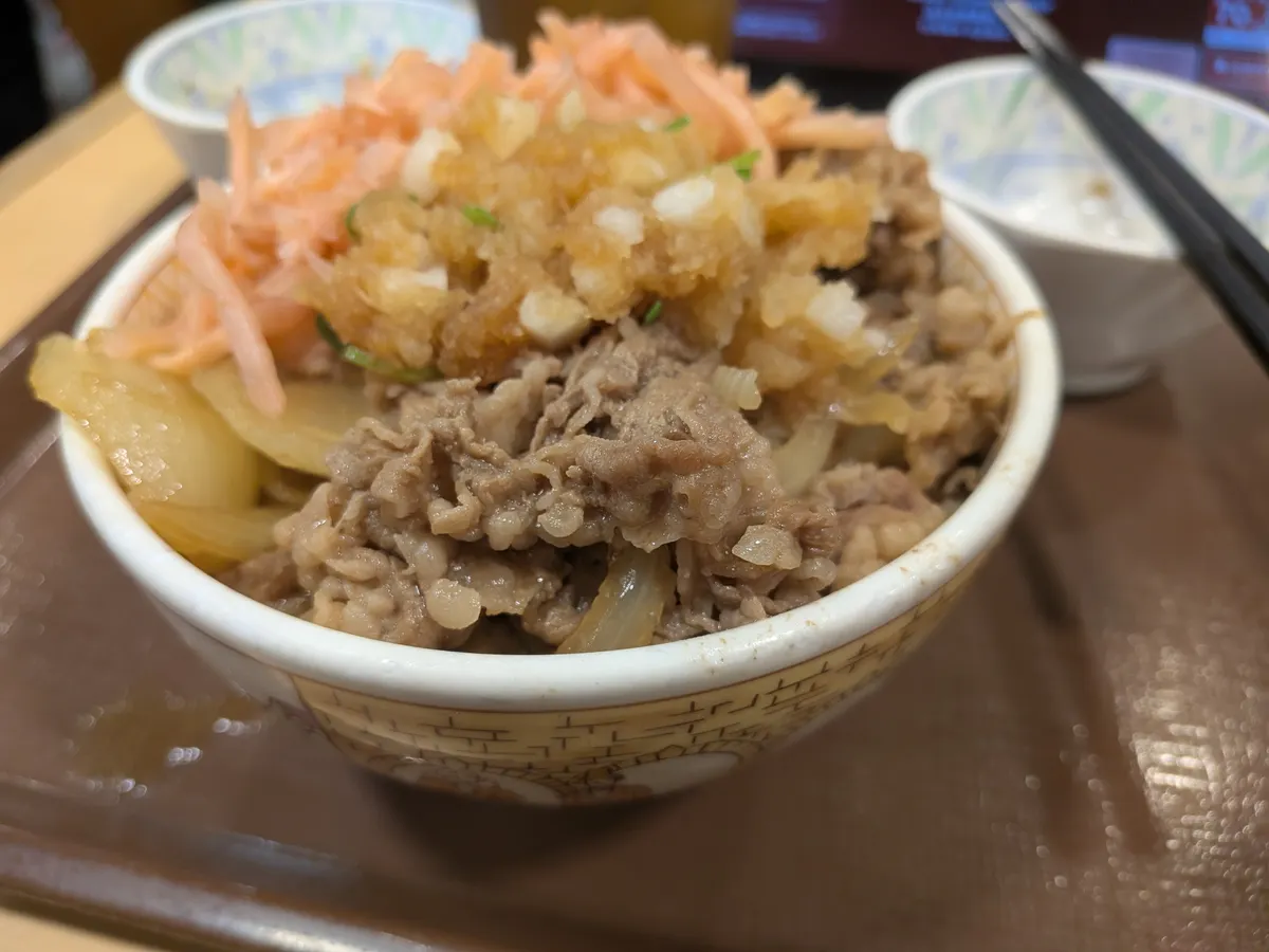 すき家で牛丼!🤭鬼おろしポン酢に牛小鉢を更にON紅生姜タップリ!🤣