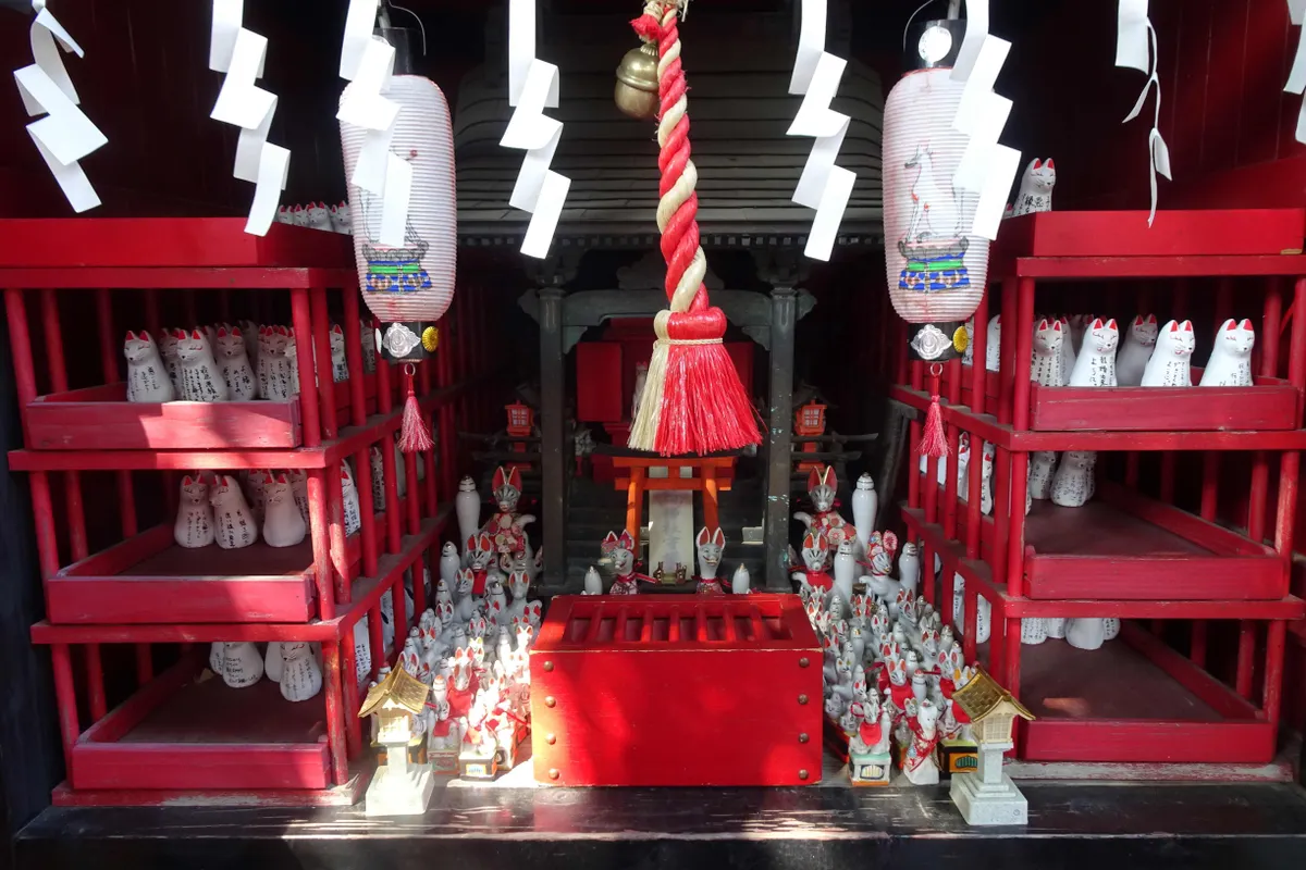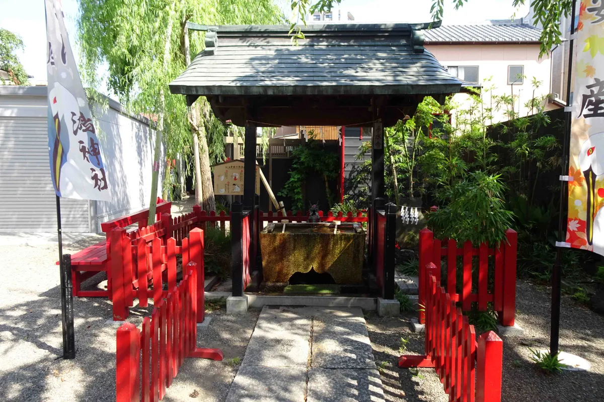 手水舎ですが、なぜか朱い柵に囲まれていました。