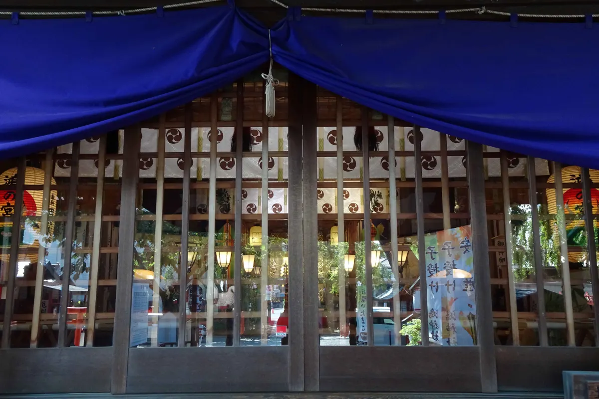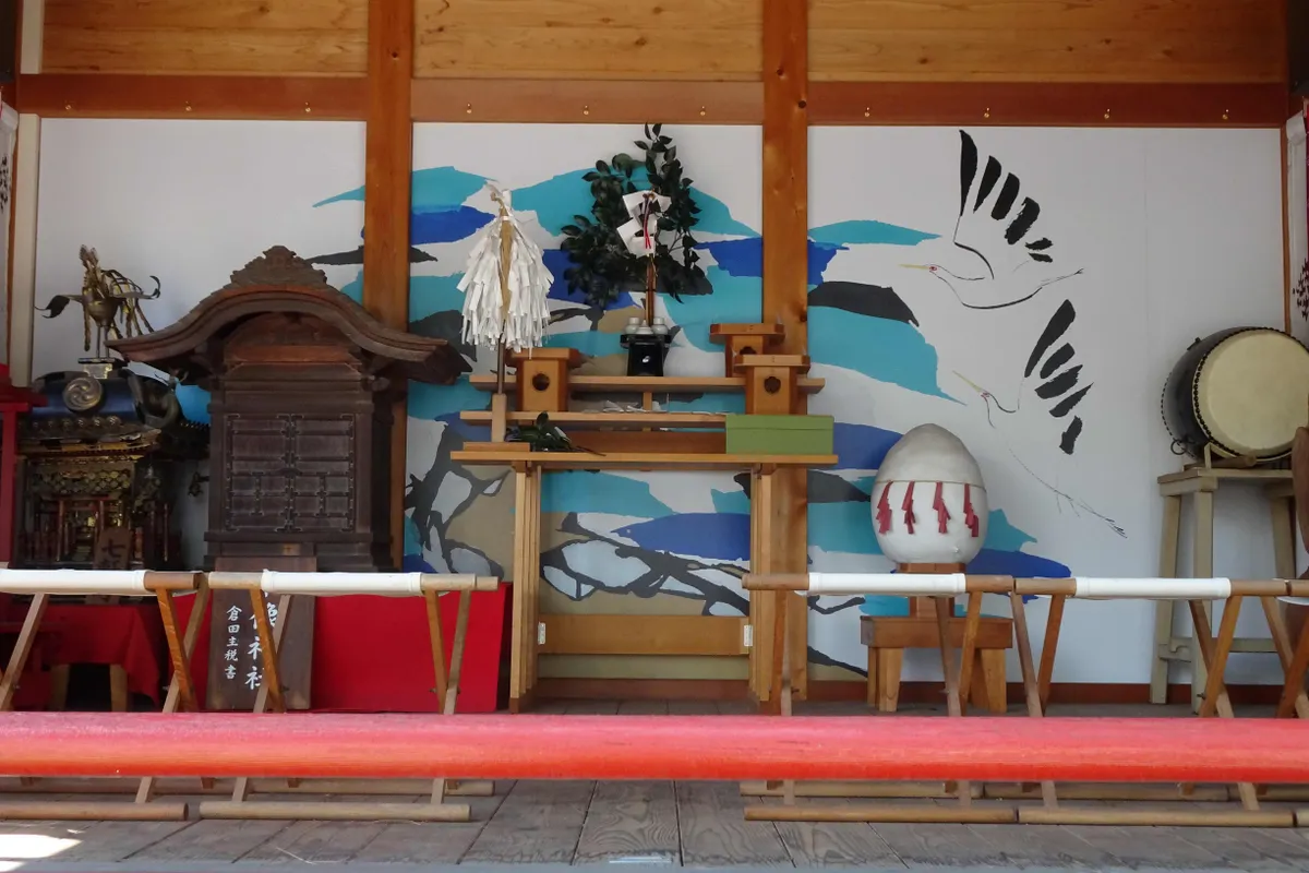 拝殿に下がっている幕にもコウノトリが描かれています。