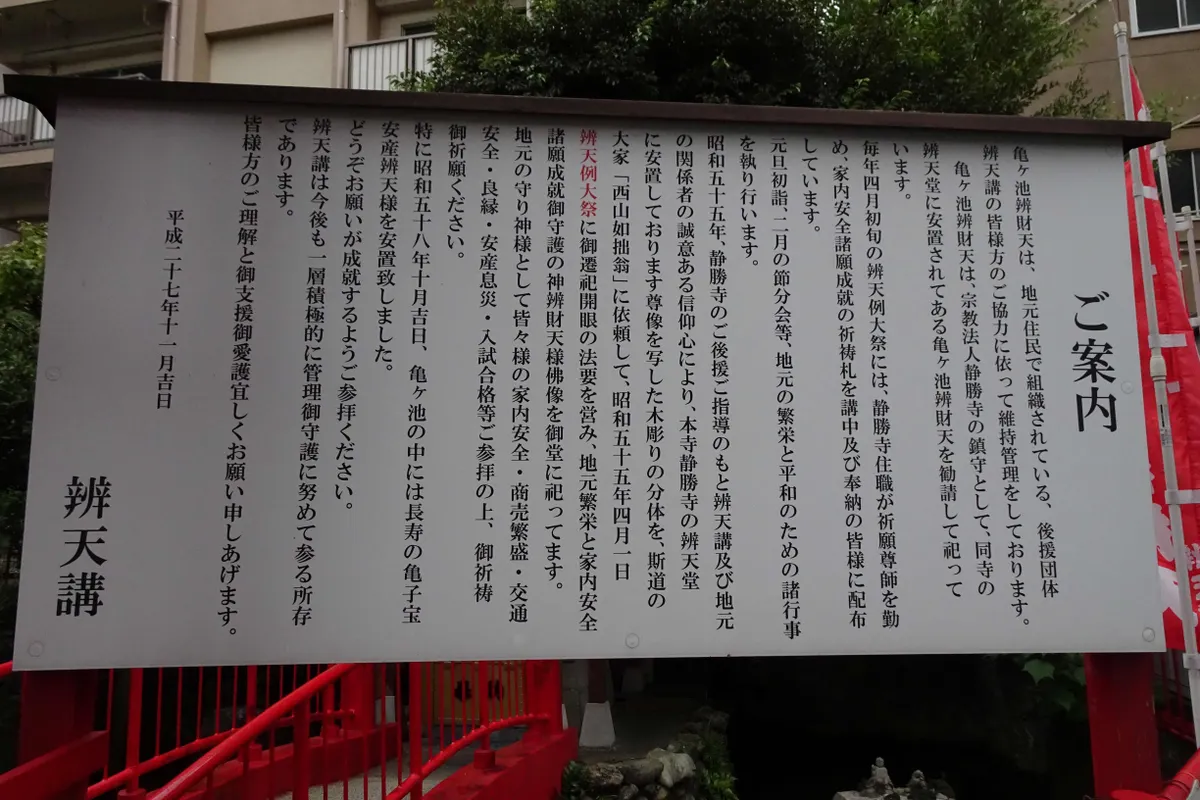 トップ > ヱビスフォト > 季節の写真 > 亀ケ池弁財天 なおなおっぴ 2026/01/02 21:22 亀ケ池弁財天 赤羽駅は西側はけっこうな登り坂になっているのですが、弁天通りの坂道を上がっていくと、亀ケ池弁財天があります。 そして橋の横に手水場がありました。 小さな社殿がありますが、 そこには亀がいました。 そして社殿を囲む池にも、亀がいました。 これも弁天様の像に見えます。 池はこんな感じです。 この弁天様の説明です。 いいね 共有する 共有する X facebook LINE リンクをコピー コメントする 1 件の返信 (新着順) ミュートしたユーザーの投稿です。 投稿を表示 legacy 2026/01/03 15:06 本当に ちっちゃいですけど ちゃんと手入れされてますよね、へー😎👍👏。 いいね 返信する ミュートしたユーザーの投稿です。 投稿を表示 なおなおっぴ 2026/01/03 23:55 legacyさん 辨天講が頑張っているみたいですね。 いいね 返信する