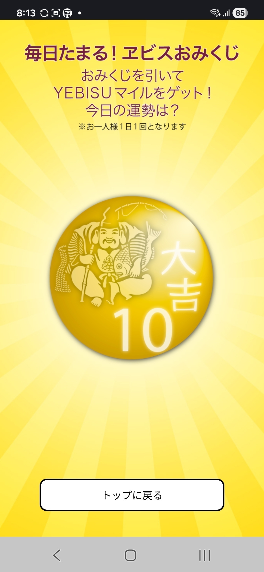 トップ > ヱビスフォト > ヱビス > 桜は満開🌸くじ引きは?? はんまーへっど 2026/03/28 08:12 桜は満開🌸くじ引きは?? 桜満開🌸 くじ引きはやっとこ“大吉” なーんか良いことあるような😁 こちらもこんなの出ました🍺 本当に良いことあるかもです😁 くじ引き 桜 満開 運勢 いいね 共有する 共有する X facebook LINE リンクをコピー コメントする 0 件の返信 (新着順)