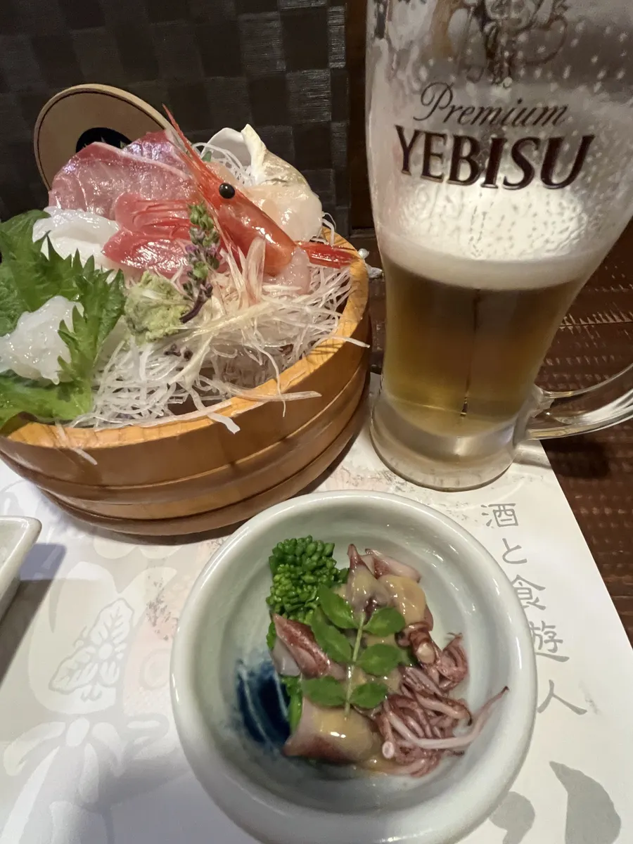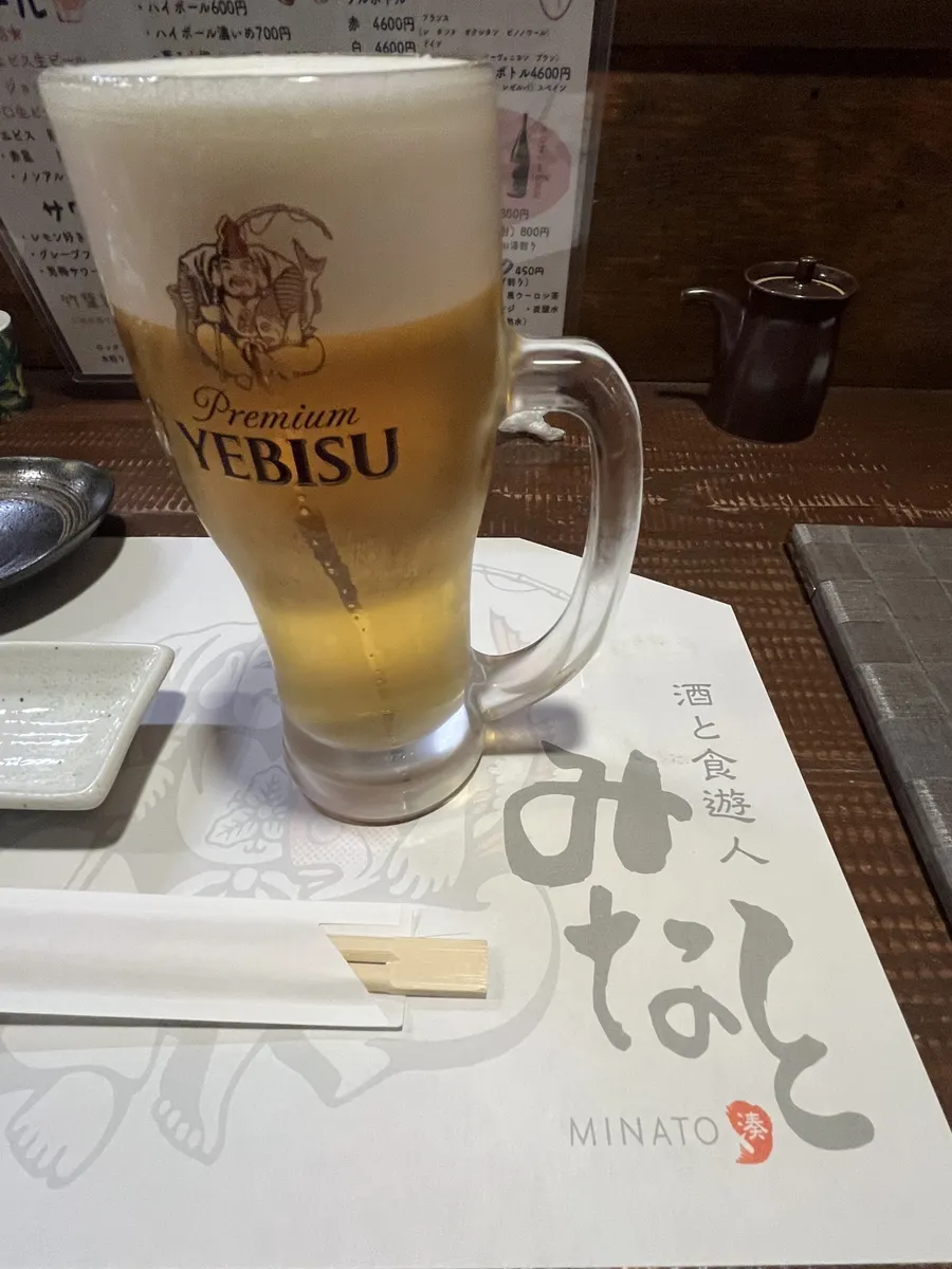 今日の嫁の誕生日🎂前祝いに🤣💦 久方ぶりにYEBIつよお気に入りのお店 「酒と食遊人みなと」へ一人飲みに🍺🎶 オープン直後だと言うのに すでに大勢のお客でほぼ満席⁉️😳 さすが金沢人気店 この日は終日予約満席だそうです👏👏👏