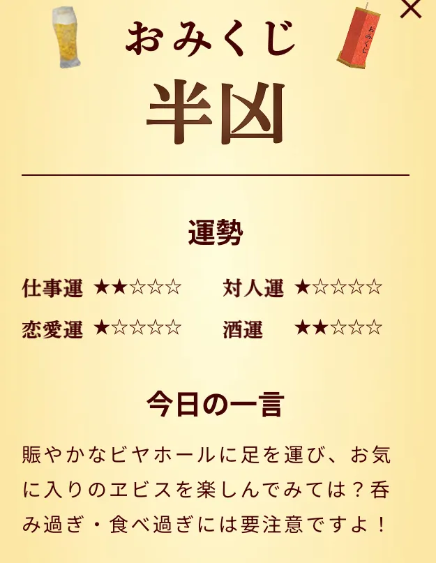 そうか、今朝引いたおみくじは、コレに繋がってたのかもしれませんね。ちなみに2日続いた末吉ウィークは昨日で終わって、今日は半凶でした。