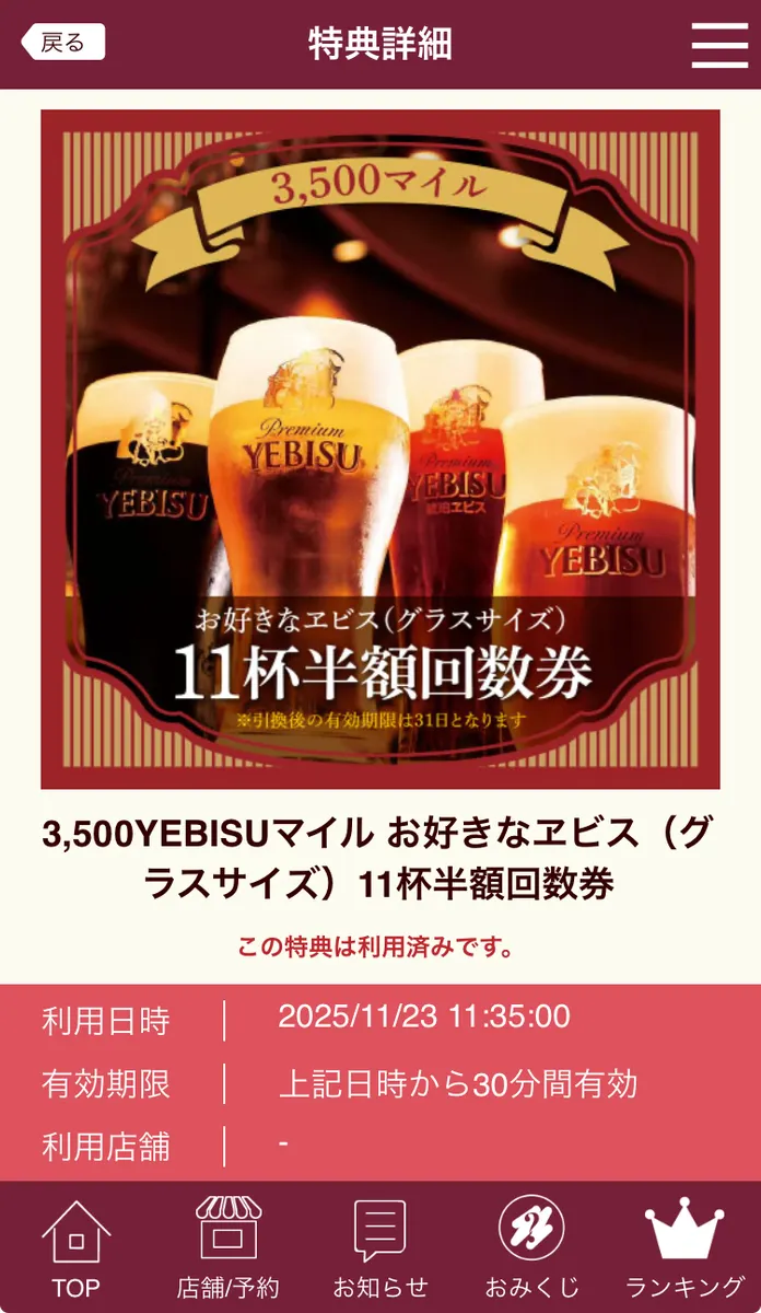 秋のアンバー(琥珀)フェアで稼ぎまくったクジの当たり🥉等半額券65枚は早々に使い果たしたので、フェアで溜まったヱビバ伝家の宝刀(11枚半額券)を発動して、kajazzyとレギュラーヱビス陣を交互にお安く頂いています。4ロット(3,500マイル×4)はあるので44杯は半額ヱビスビールになります。