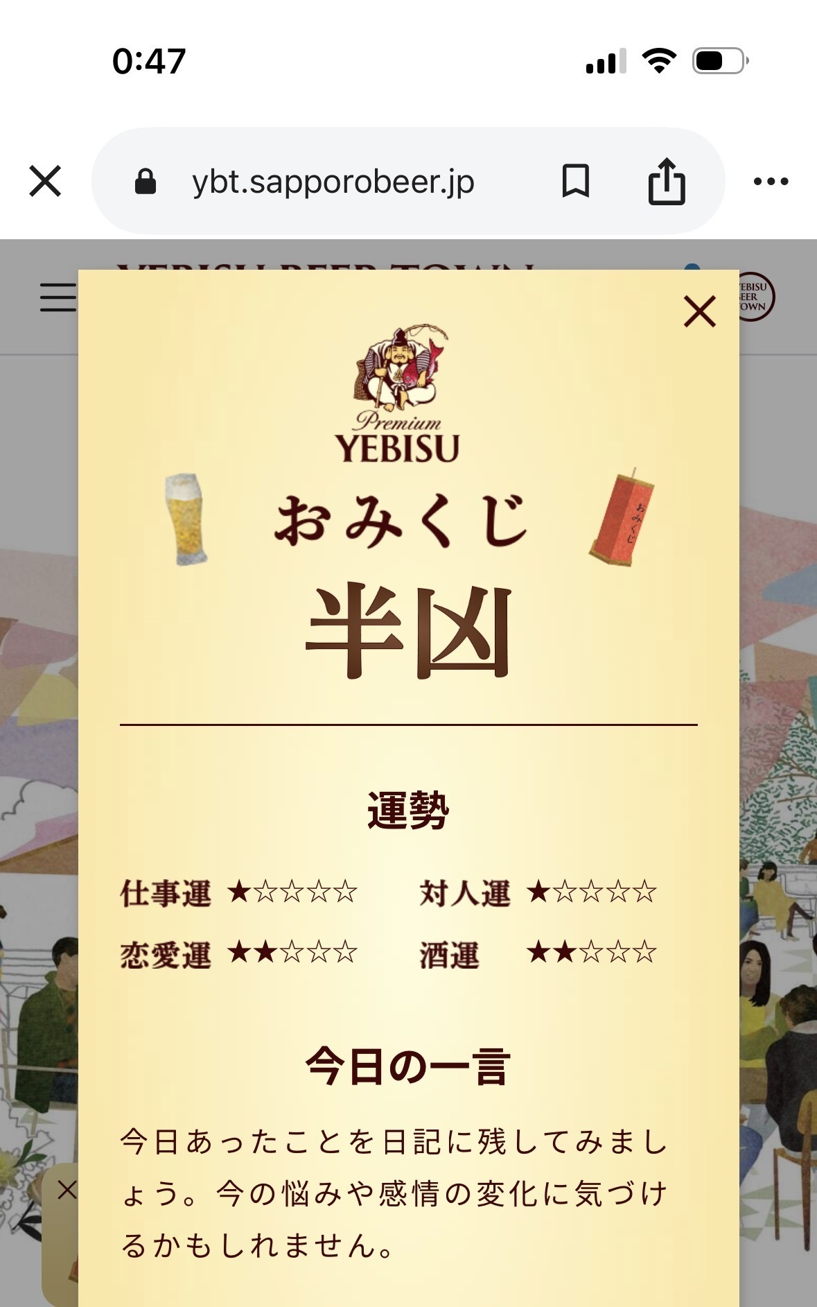 トップ > ヱビスフォト > 😱 ひろリンリン 2026/03/09 00:48 😱 こんな日もあるよね😱 いいね 共有する 共有する X facebook LINE リンクをコピー コメントする 1 件の返信 (新着順) ミュートしたユーザーの投稿です。 投稿を表示 たんたんめん 2026/03/09 04:39 私も半凶でした。大丈夫👍 いいね 返信する