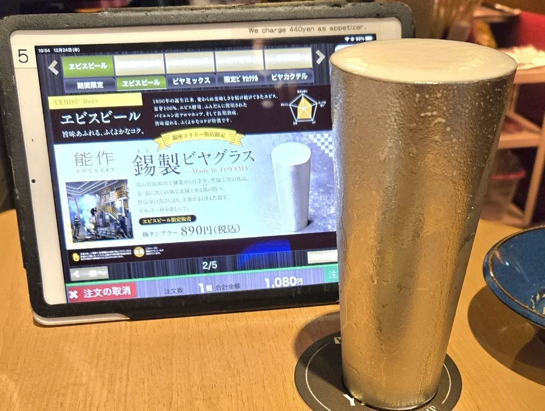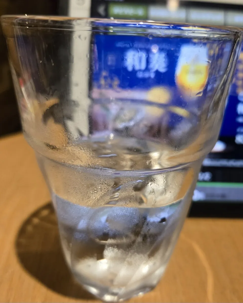 タブレットで水を注文したら、ベテラン注ぎ手のTさんがソフトドリンクグラスで用意してくれた。さすがです😊