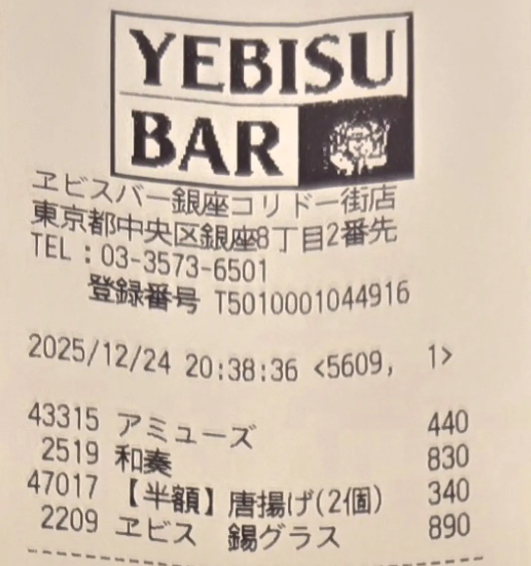 昨日の話ですが、ヱビスバーアプリ、唐揚げ半額クーポンを使いに銀座コリドー街店へ行ってきました🐔