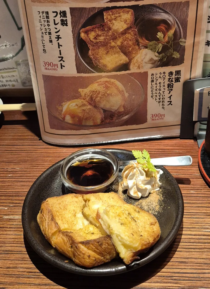 ↑↑↑燻製フレンチトースト(429円)♪︎~。デザートで燻製は初めてでしたが…“アリ”です。燻製特有の薫り…美味しかったです。