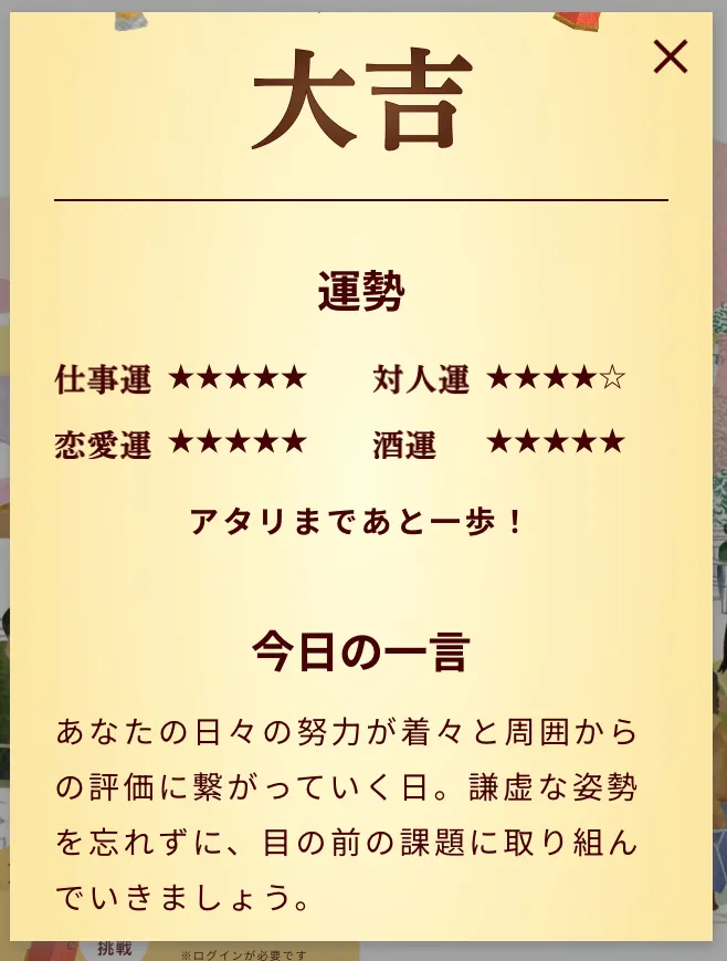 意外と大吉でした。周りに恵まれてる部分もある、かも知れません。着々と評価に繋がるならソレは有り難いですが、その前に身動きが出来ないくらい仕事を振られそうな予感がします。下期から引き継いだ仕事は、前の担当が職人のような人で、進め方とかポイントとかさっぱり…早めにいろいろ掘り返して情報を揃えなきゃ、と思ってます。