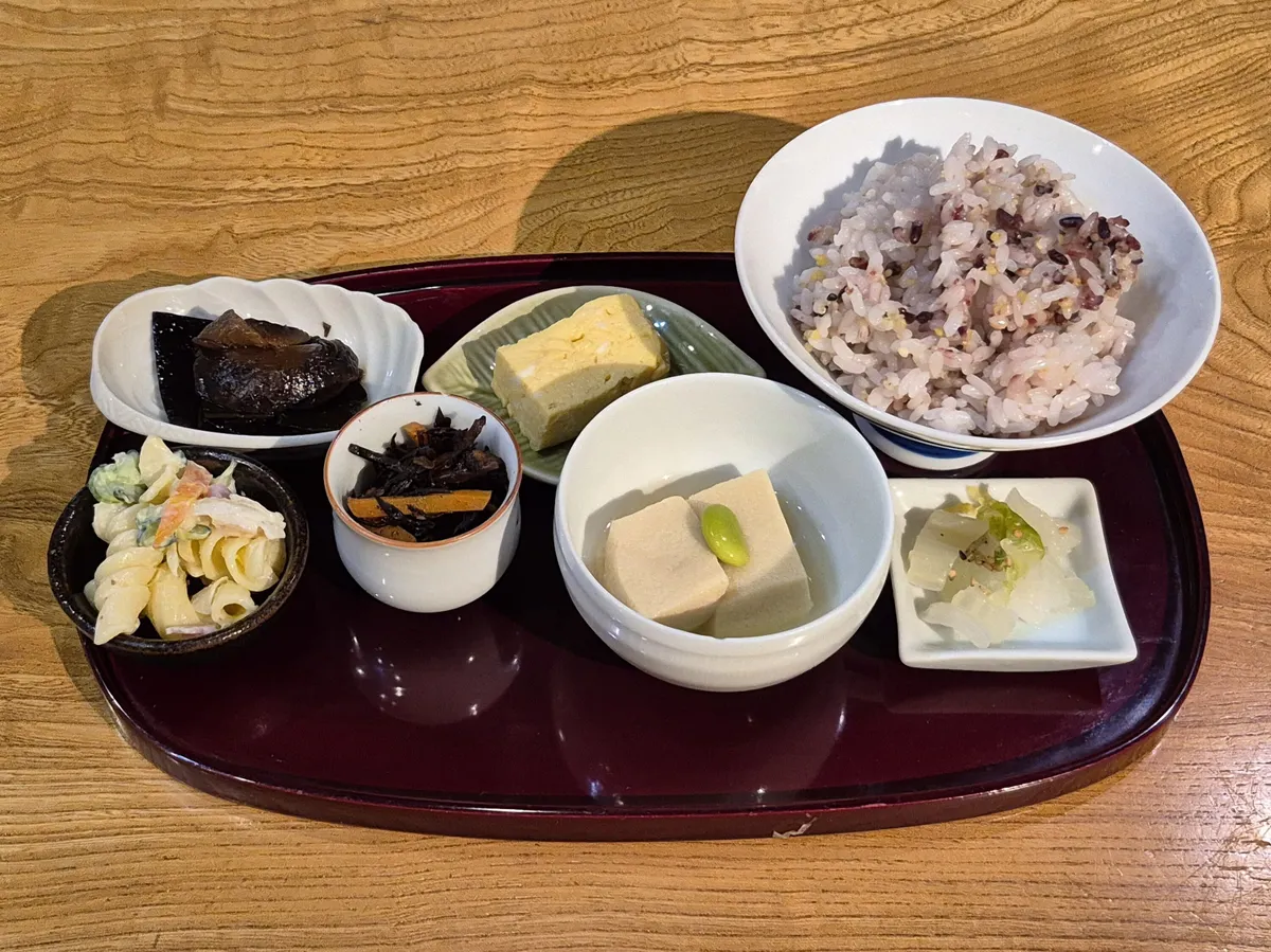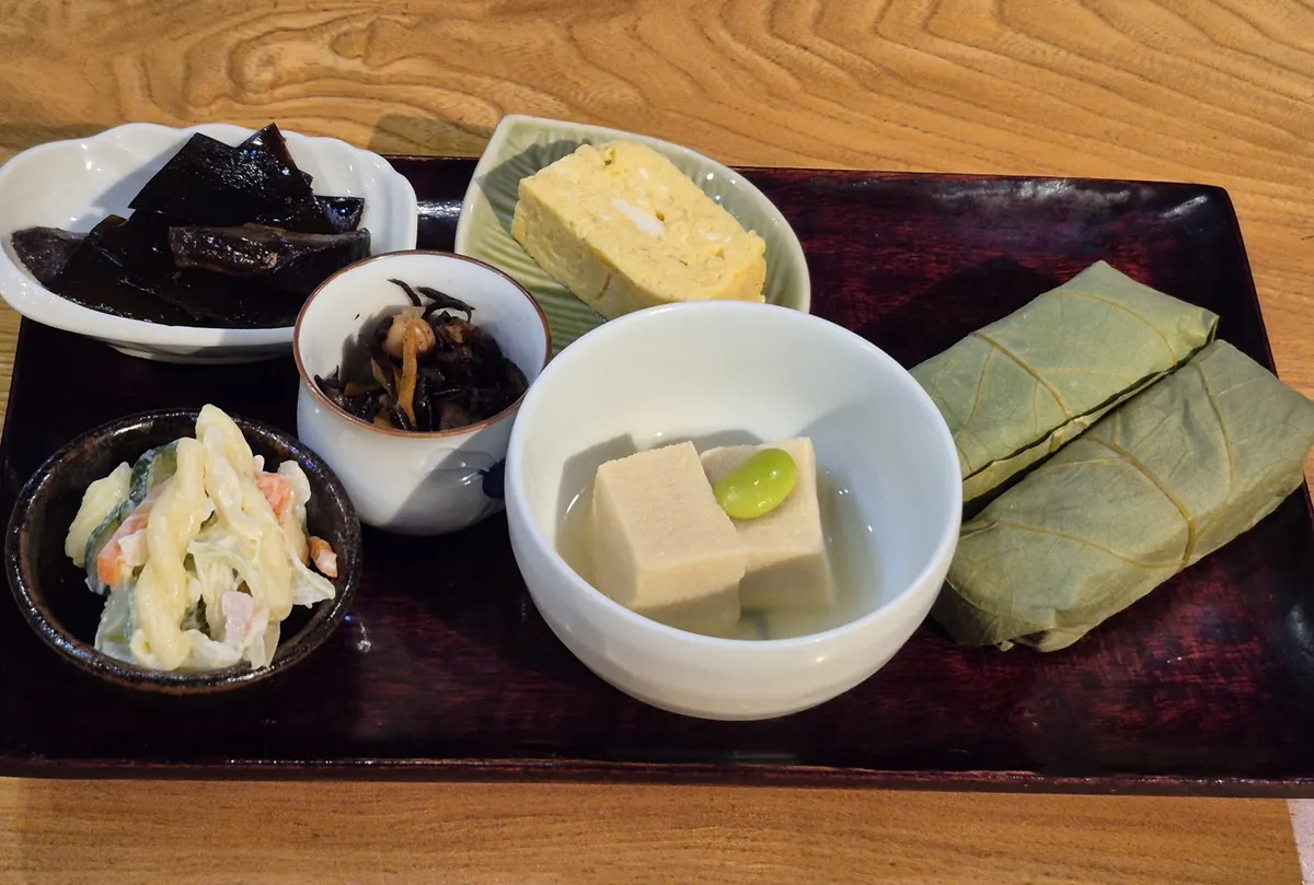 ↑↑↑昼のおきまり♪︎~小鉢物何品かと季節の御飯または柿の葉寿司がついて,500円♡↓↓↓