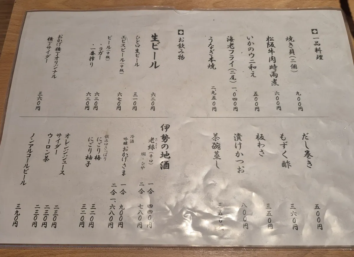 伊勢神宮(内宮)近くにある郷土料理のお店です。伊勢神宮のお参りの際に立ち寄る場所では有りますが,今回は,伊勢志摩の郷土料理(てこね寿司)とヱビスを頂く事を主目的として,伺いました。また,お祝いの日に行きたいお店としての下見も兼ねて…。お祝いの日に伊勢は,旅行がてらになりますが,思い出に残る記念日になるのではと思い…。