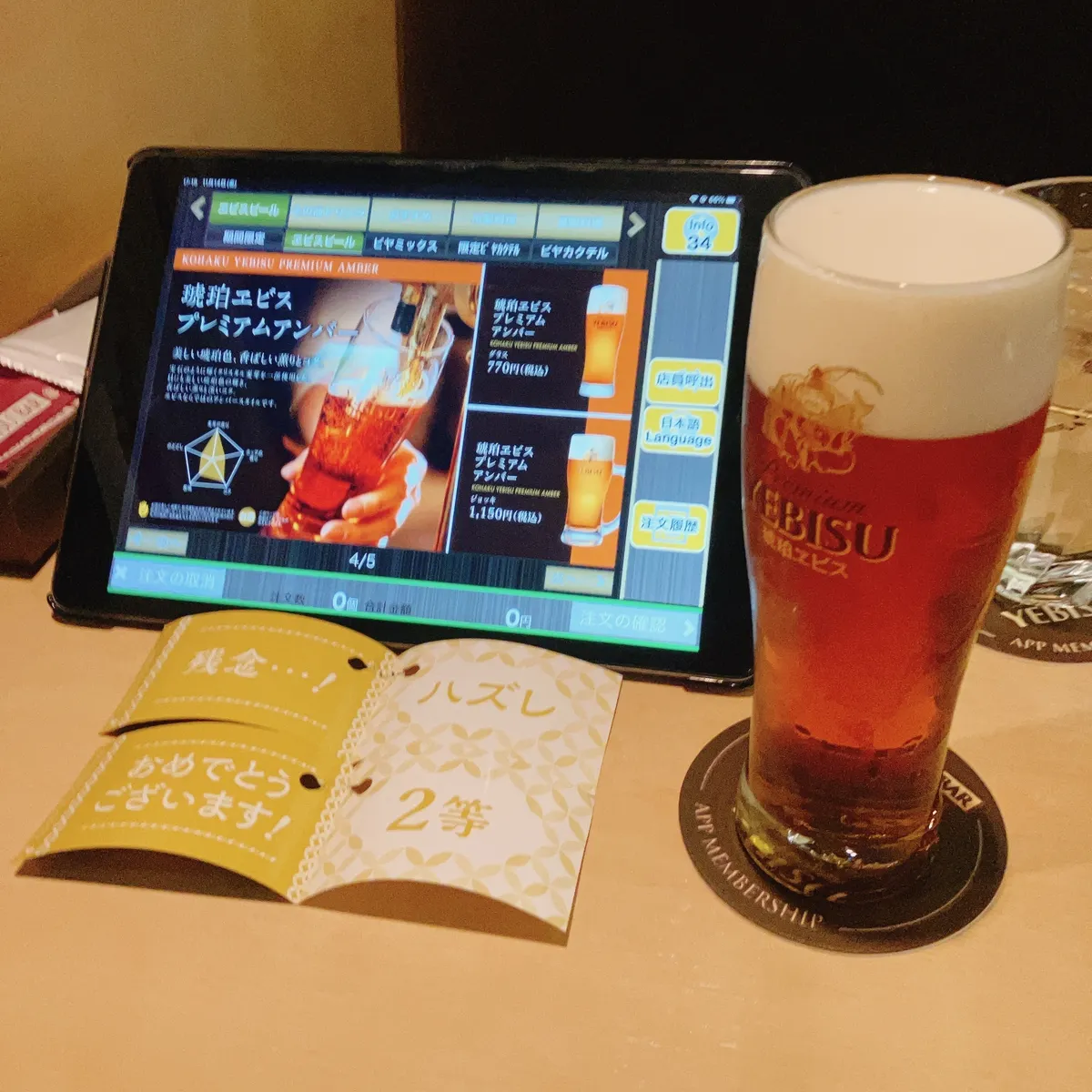 ヱビバ新宿店11杯 クジ:1等1枚、2等1枚、