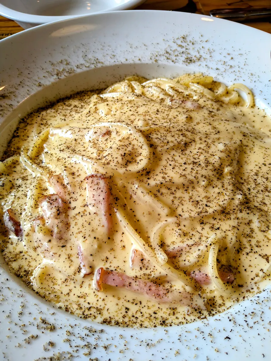▼ピザだけでなく、パスタも最高にヱビスがすすみます!ここのカルボナーラは絶品!