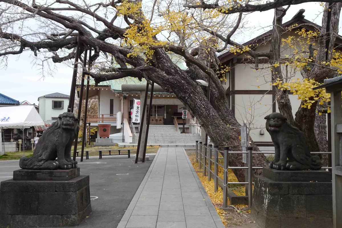 拝殿に向かう参道には、御神木らしき公孫樹が枝を伸ばしていました。