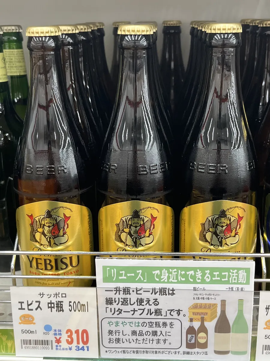 一目散にヱビス瓶ビールコーナーへ🤭 中瓶3ケースの入荷を発見🎶 もちろん1本1本チェックしましたが 出逢えず諦めかけたその時‼️🫢 陳列されてる瓶の正面に なんとラッキーヱビスが居たぁ❣️👇