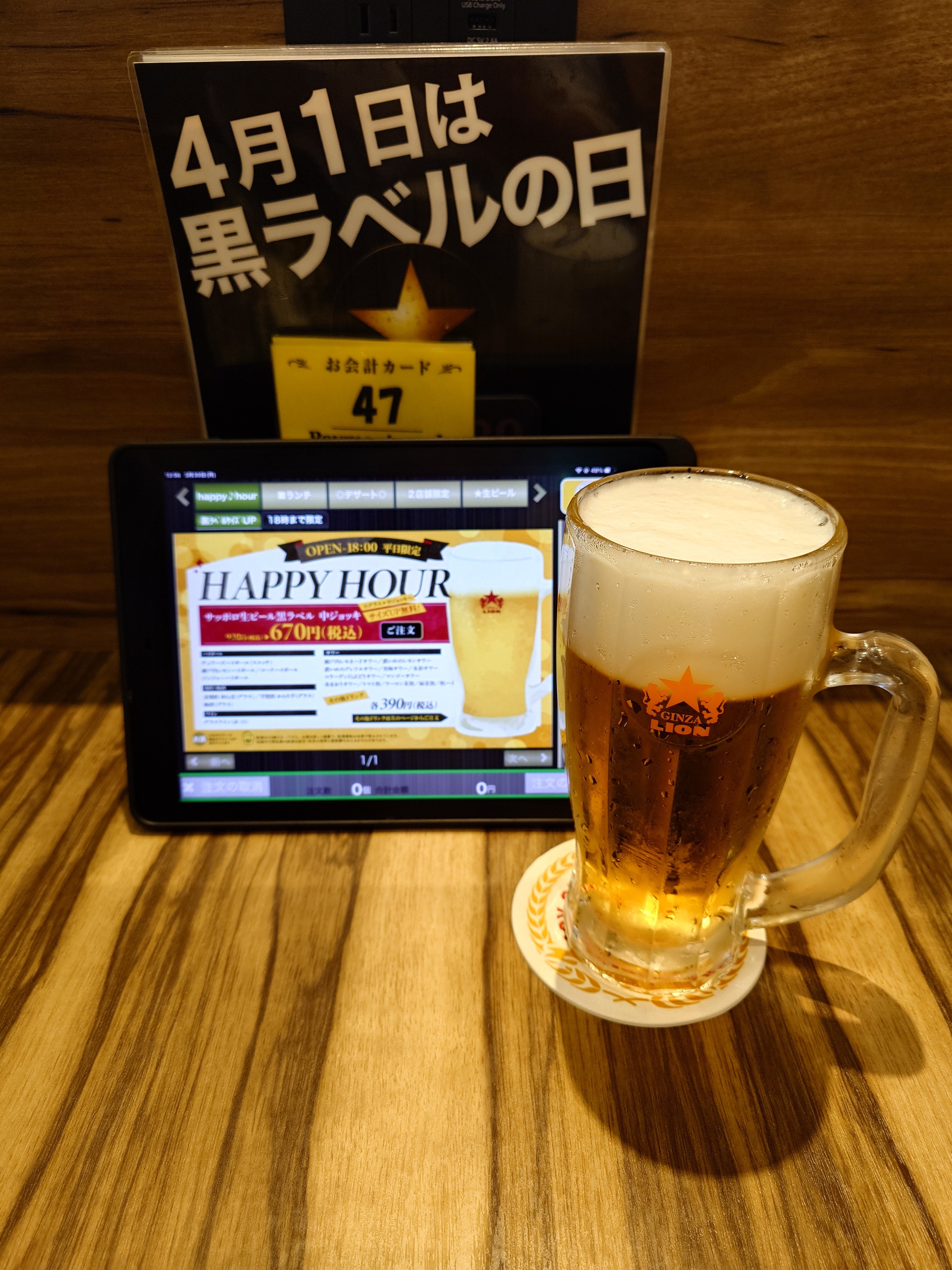 都心のライオンやYEBISU BARでよく見掛ける光景だが、郊外店では個人的に見掛けないからだ。
