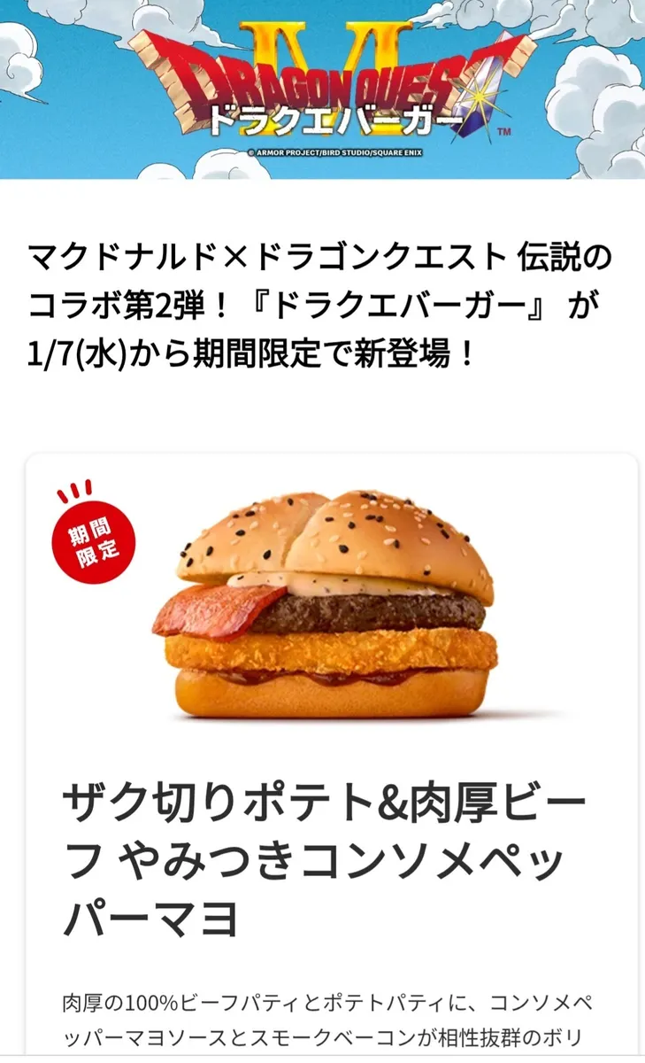 トップ > ヱビスフォト > ドラクエバーガー🍔 丸くなるな、★星になれ。 2026/01/11 19:39 ドラクエバーガー🍔 中はこんな感じでした😊気になっていたので、ザク切りポテトと肉厚ビーフ🍔 クーポン利用で単品540円昨今の物価高を考えると妥当な金額かな🤔 味的には王道ですかね、美味しかったです いいね 共有する 共有する X facebook LINE リンクをコピー コメントする 0 件の返信 (新着順)