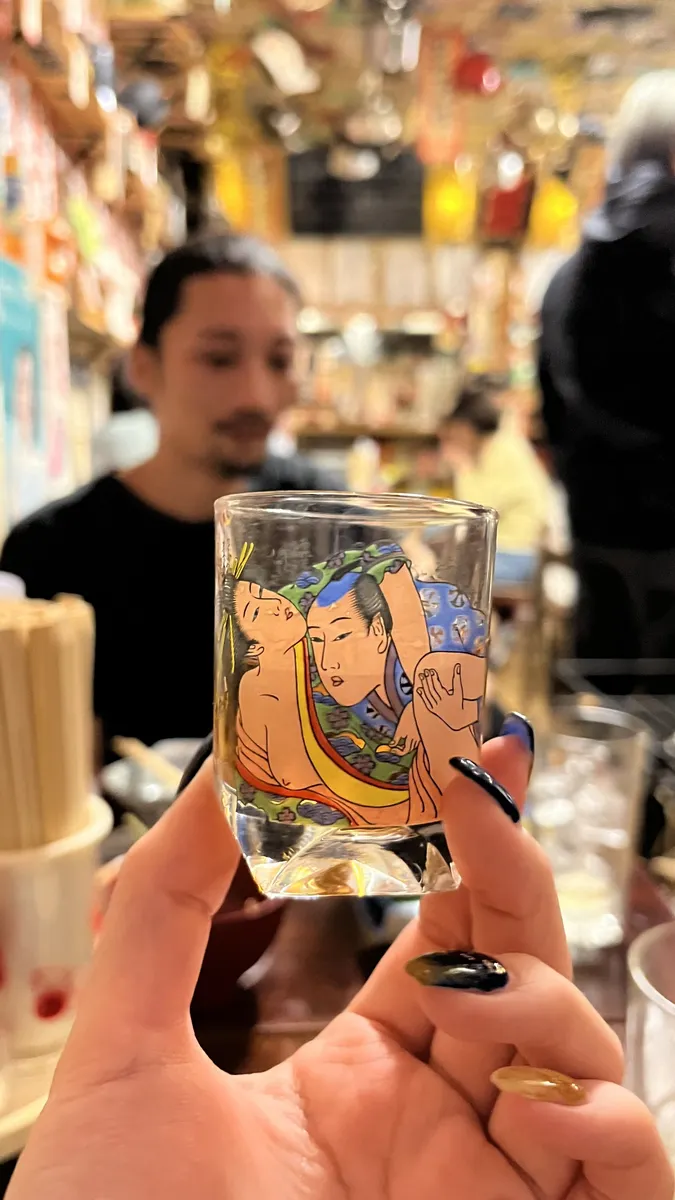 春画の柄のおちょこでマカの原酒を淹れてくれました笑