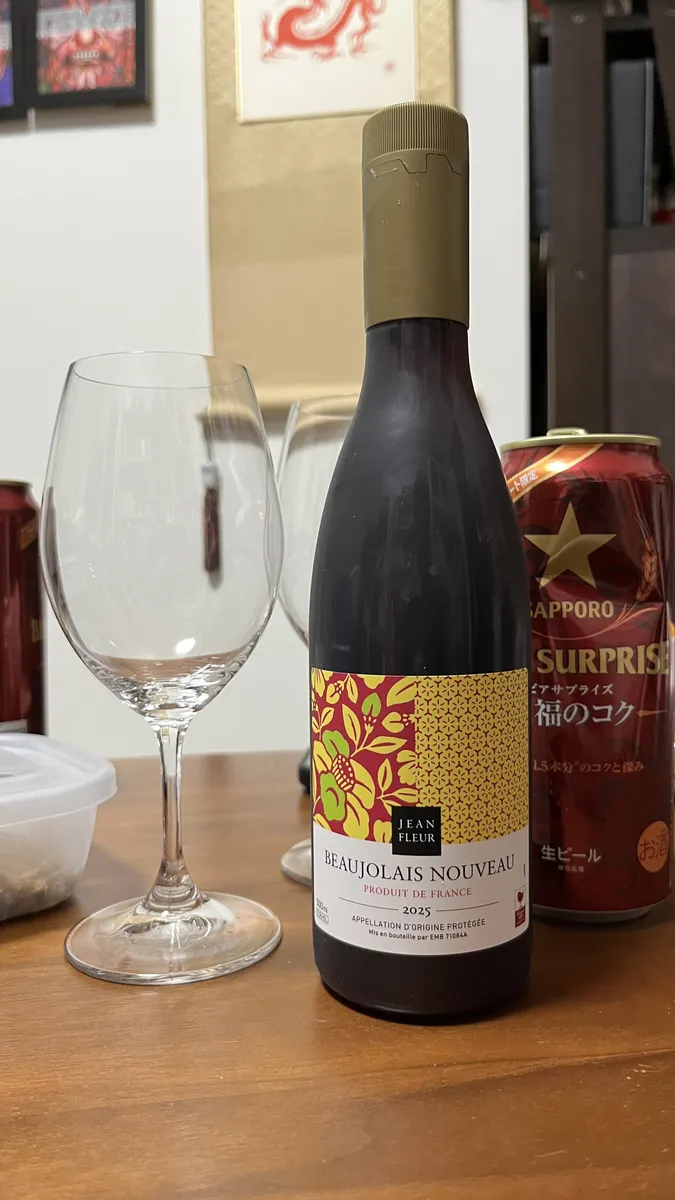 帰ってデータチェックしながらファミマ限定のサッポロビールとボジョレーを。