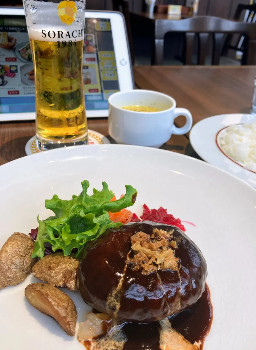 エビバのハンバーグコンボよりLEOのデミグラスソースのハンバーグの方が美味そうに見える〜!🤤銀座ライオンLEOの店長も恵比寿天懇意にしてもらってます!恵比寿天も店長も同じ苗字ですから…!🤭🤣🤣🤣"店長と同じ苗字の人から"と言えばわかってもらえますよ