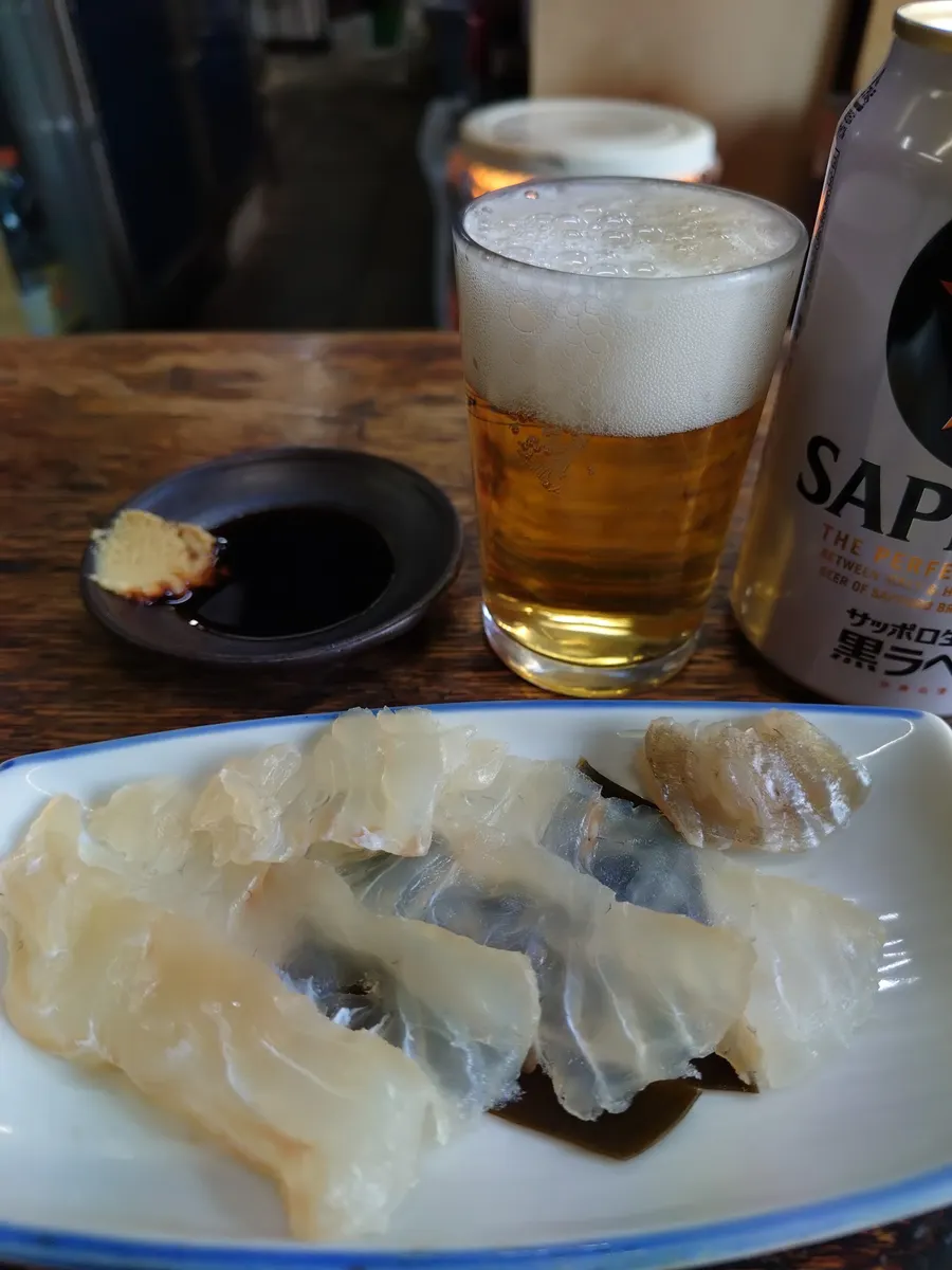 トップ > ヱビスフォト > グルメ・料理 > 角打ちと黒ラベル ken_pro 2026/02/21 06:00 角打ちと黒ラベル 平目昆布〆と黒ラベル缶。 平目はねっとりとした食感で、 濃厚な旨みがあります。 皮ハギ煮付けと燗酒一合。 皮ハギはふっくらとして、 甘辛いタレで旨みが増します。 美味しかった。 ごちそうさまでした。 角打ちと黒ラベル 平目昆布〆と黒ラベル缶 皮ハギ煮付けと燗酒一合 いいね 共有する 共有する X facebook LINE リンクをコピー コメントする 1 件の返信 (新着順) ミュートしたユーザーの投稿です。 投稿を表示 マリリン 2026/02/22 16:32 ken_proさん こんにちは 平目の昆布締めに皮ハギの煮付け😍 美味しそうです🤤 食べた~い🥰 黒ラベルと燗酒で乾パ〜〜~イ🍻🍶🤗 いいね 返信する ミュートしたユーザーの投稿です。 投稿を表示 ken_pro 2026/02/22 21:03 マリリンさん こんばんは〜🌠 平目と皮はぎ、 美味しゅうございました〜🥳 一度お運び下さ〜い✨ 黒ラベルと燗酒で乾パ〜〜~イ🍻🍶🤗 いいね 返信する