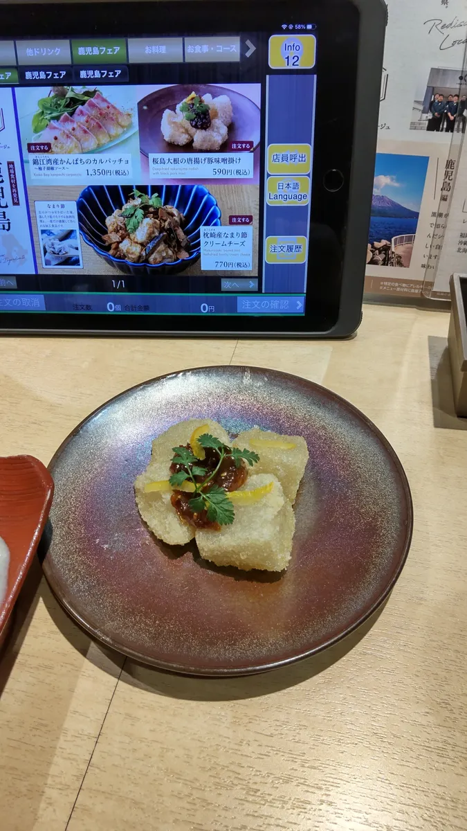 鹿児島フェア、前回も頼んだ桜島大根の唐揚げ。