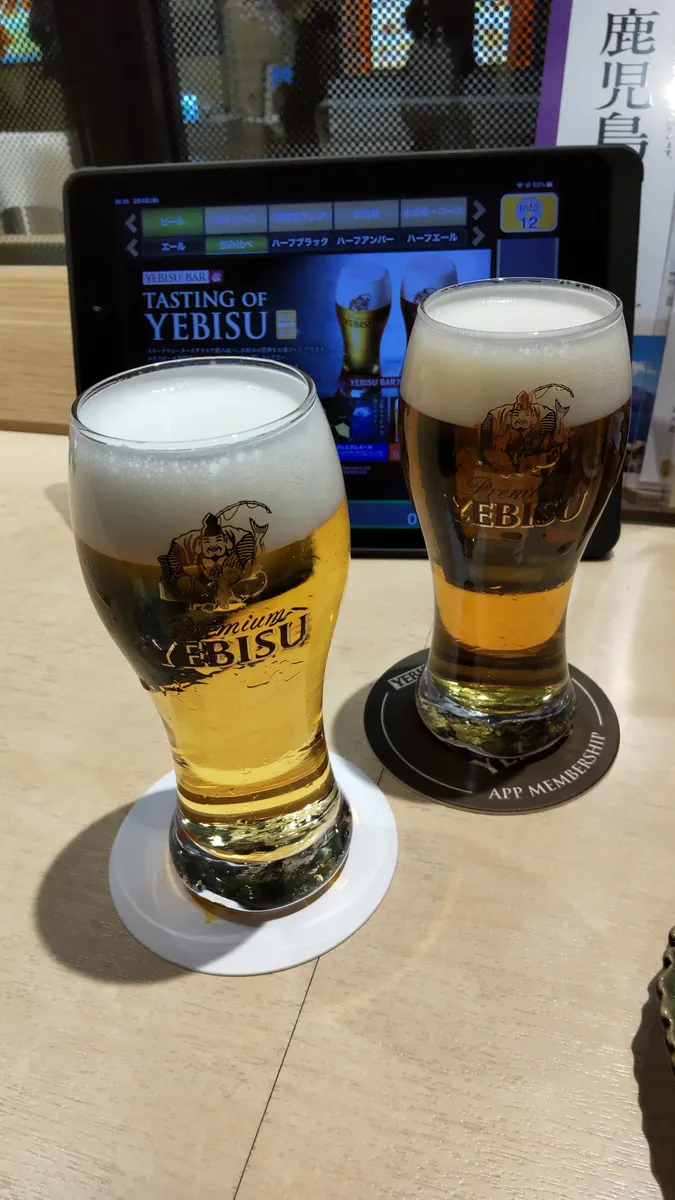 三杯目、四杯目は飲み比べのヱビスとアンバー。