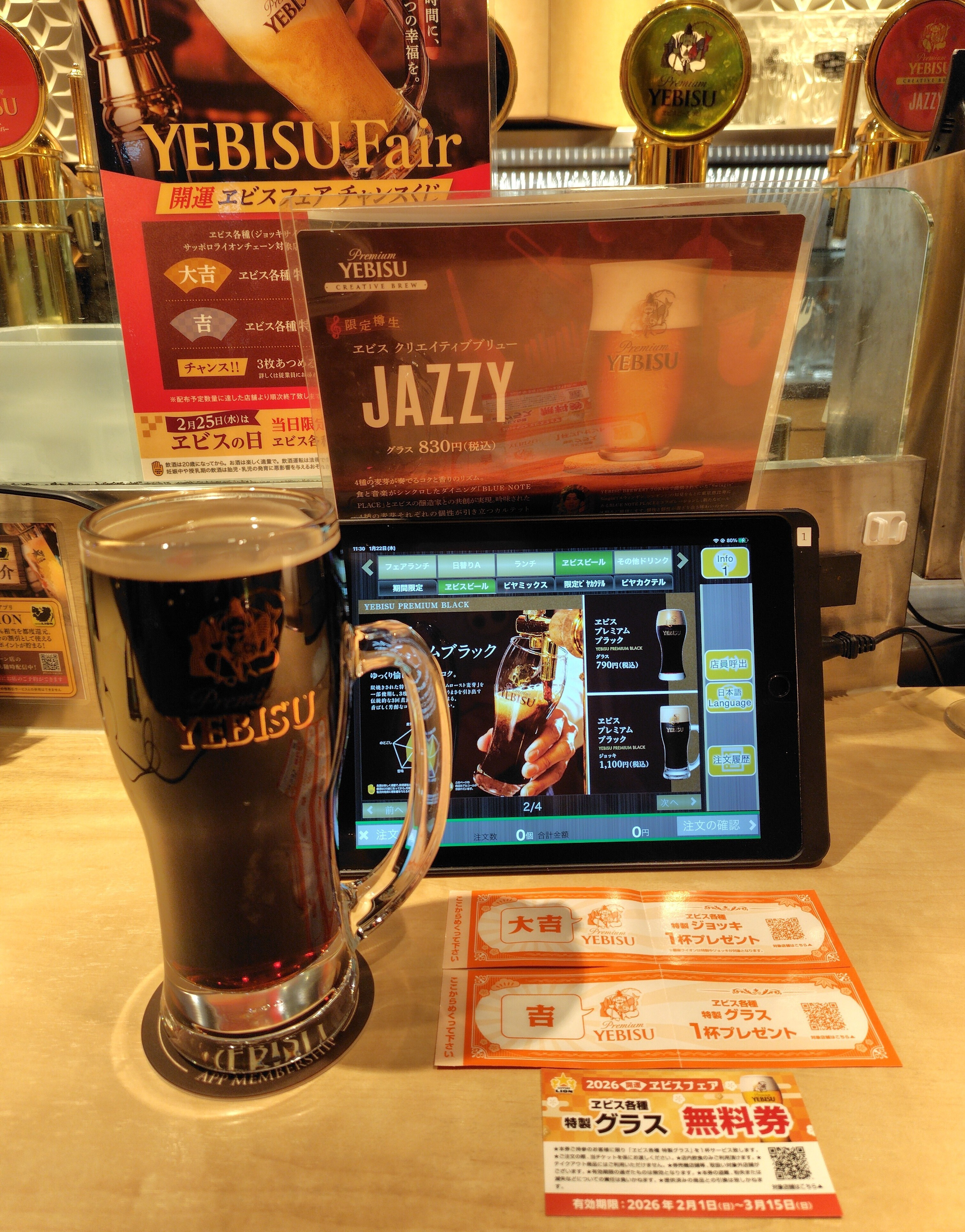 トップ > ヱビスフォト > YEBISU BAR > 開運ヱビスフェア チャンスくじ🎯 monaka 2026/01/24 12:04 開運ヱビスフェア チャンスくじ🎯 今月開催中の開運ヱビスフェア🎯 YEBISU BAR グランスタ八重北店にてチャレンジ😊 チャンスくじは大吉1枚、吉1枚、そしてチャンスが3枚となりおみくじ1回引いてグラスサイズビール無料券をゲットしたので、計5杯にて終了することに❗😆 ちなみに5杯目はプレミアムブラック、普段飲まないジョッキは重たい😉 YEBISUBAR 開運ヱビスフェア チャンスくじ 大吉1枚、吉1枚、チャンス3枚 計5杯で終了 YEBISUBARグランスタ八重北店 プレミアムブラック いいね 共有する 共有する X facebook LINE リンクをコピー コメントする 0 件の返信 (新着順)