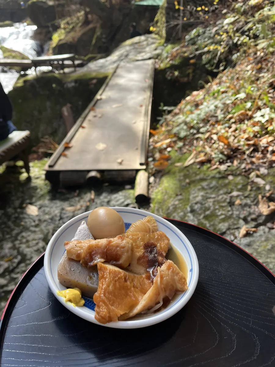 トップ > ヱビスフォト > グルメ・料理 > 小太郎茶屋で一服🍵 和好人 2025/11/14 19:17 小太郎茶屋で一服🍵 本日、朝9月から15時くらいまで塩原温泉郷の散策路を歩きました。小太郎が淵にある小太郎茶屋。回転時間の11月前に並び二番客でした。名物の草団子抹茶セットを頼んだのですが、おでんがあまりに美味しそうなのと、コスパ(玉子、竹輪、蒟蒻、白滝、厚揚げ、薩摩揚げ二枚が入り、味がシミシミ!で600円)なので追加しました!! いいね 共有する 共有する X facebook LINE リンクをコピー コメントする 0 件の返信 (新着順)