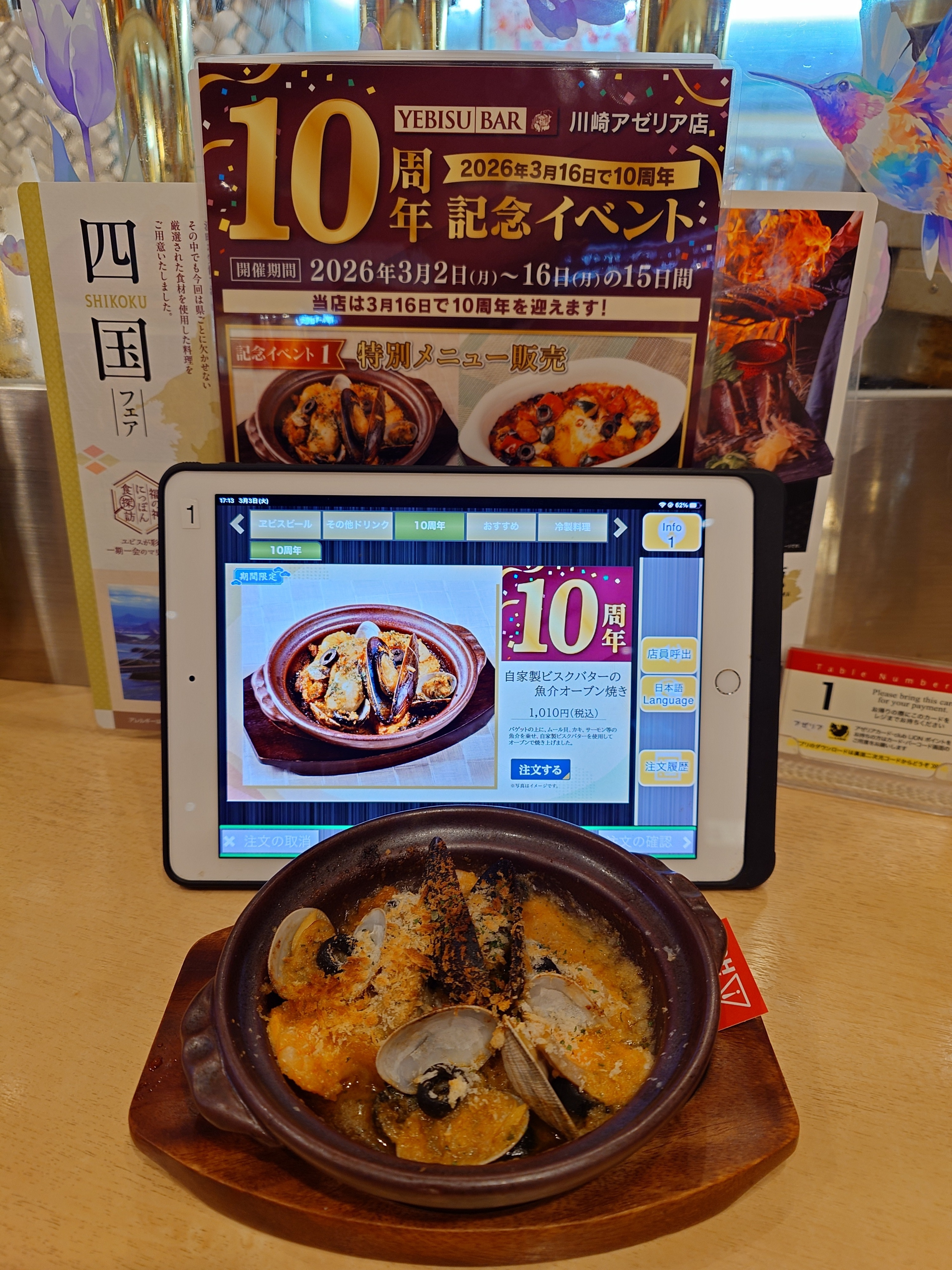 YEBISU BAR川崎店が今月16日て10周年を迎えるにあたり、スペシャルメニューを出していることから2軒目で利用した👍