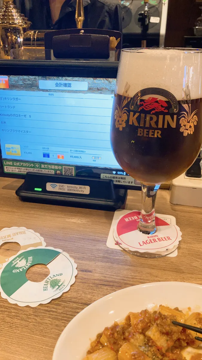 キリンシティのボロネーゼをアテにブラウマイスター、ハートランド、(メガ)キリンラガーを頂きましたが、料理もビールもとても美味しく頂けました。ご馳走様でした。