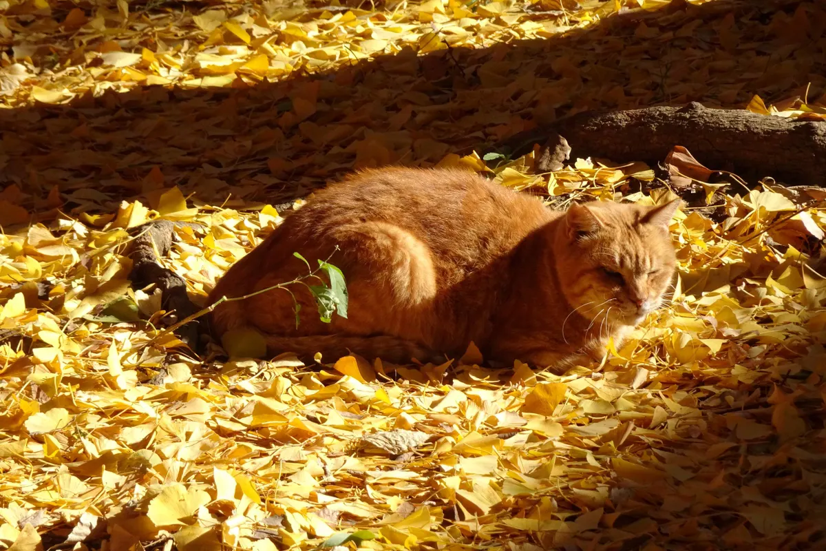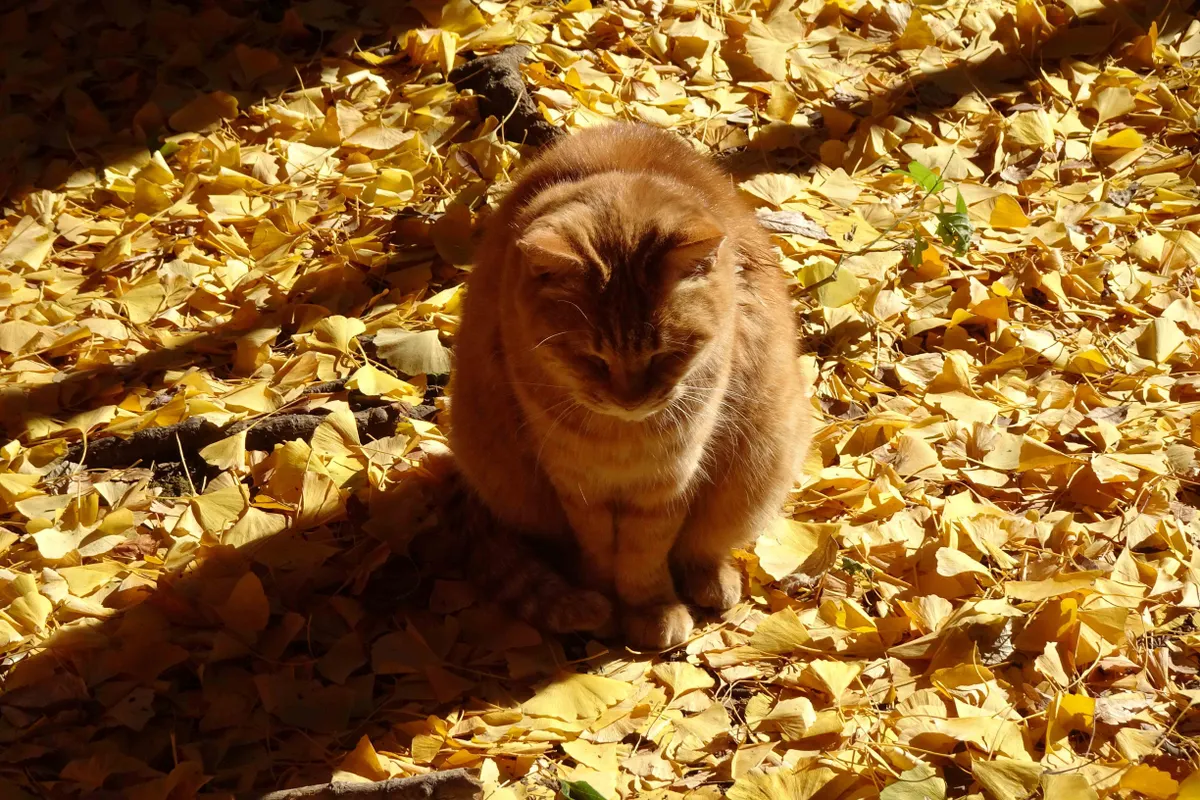 公孫樹の葉と同系色なので、地面となじんでいます。