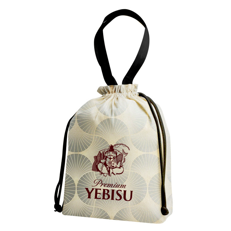 そこで、ちょっとした気軽なギフトに、用意したヱビスを包めるようなものがあれば便利なのでは?と考え、ヱビス(350ml缶×6本)がぴったりと入るサイズの巾着の開発を考えました!
