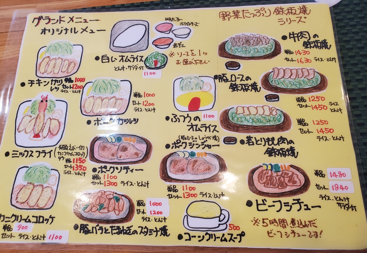 メニューはマスターの手書きイラストです