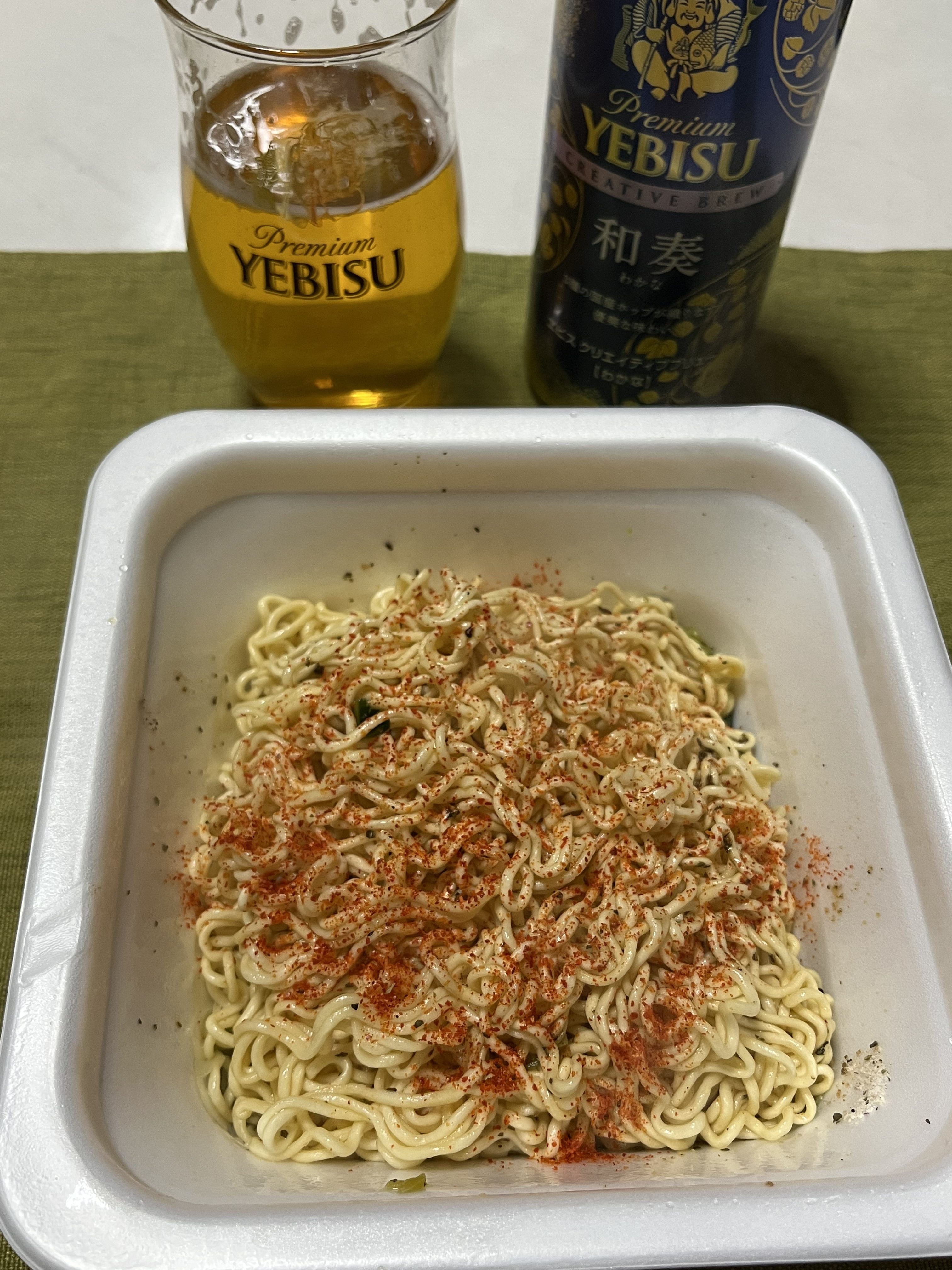 投稿を表示カップ焼きそばでビール、最高でーす😎👍👏。