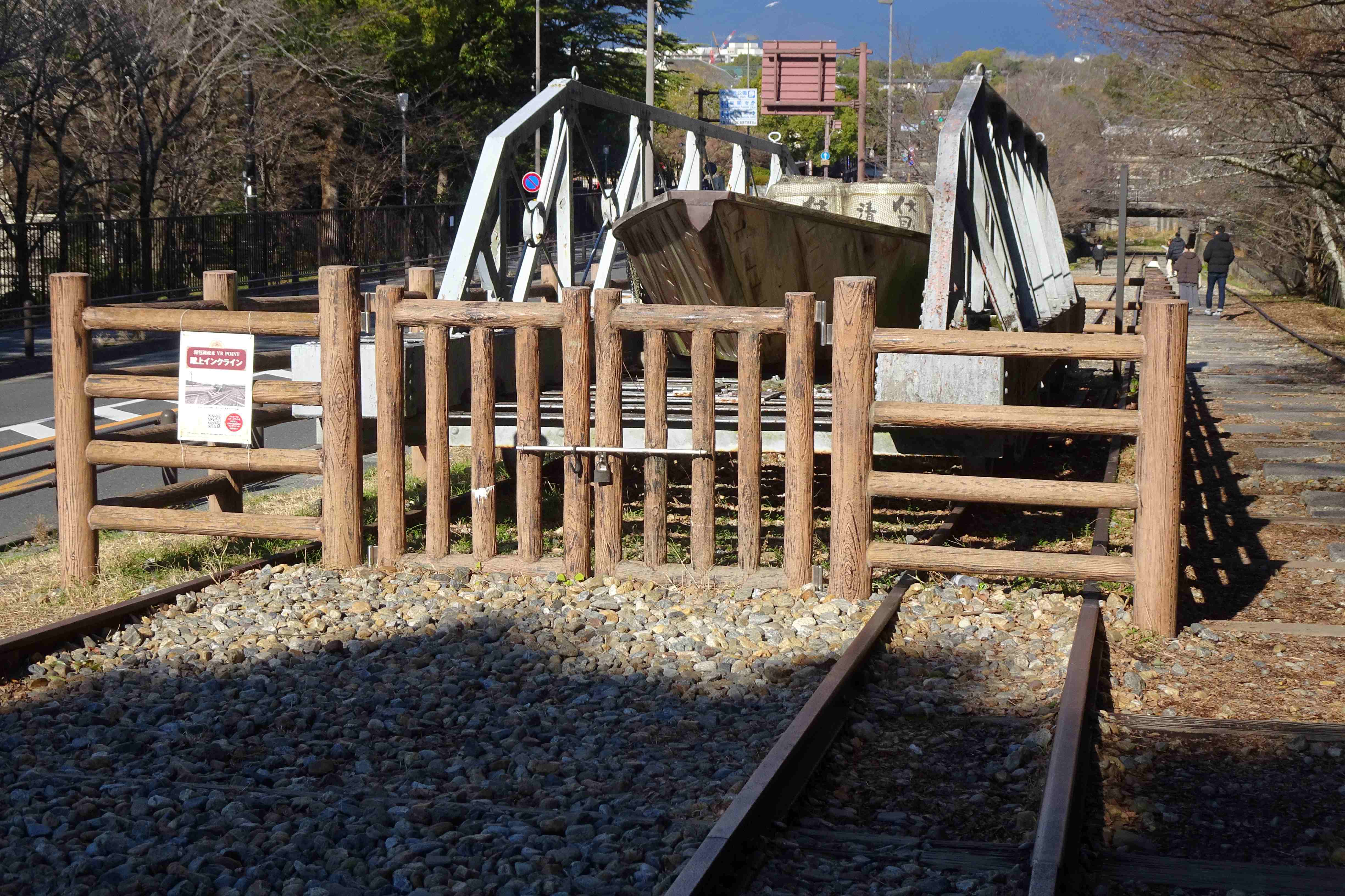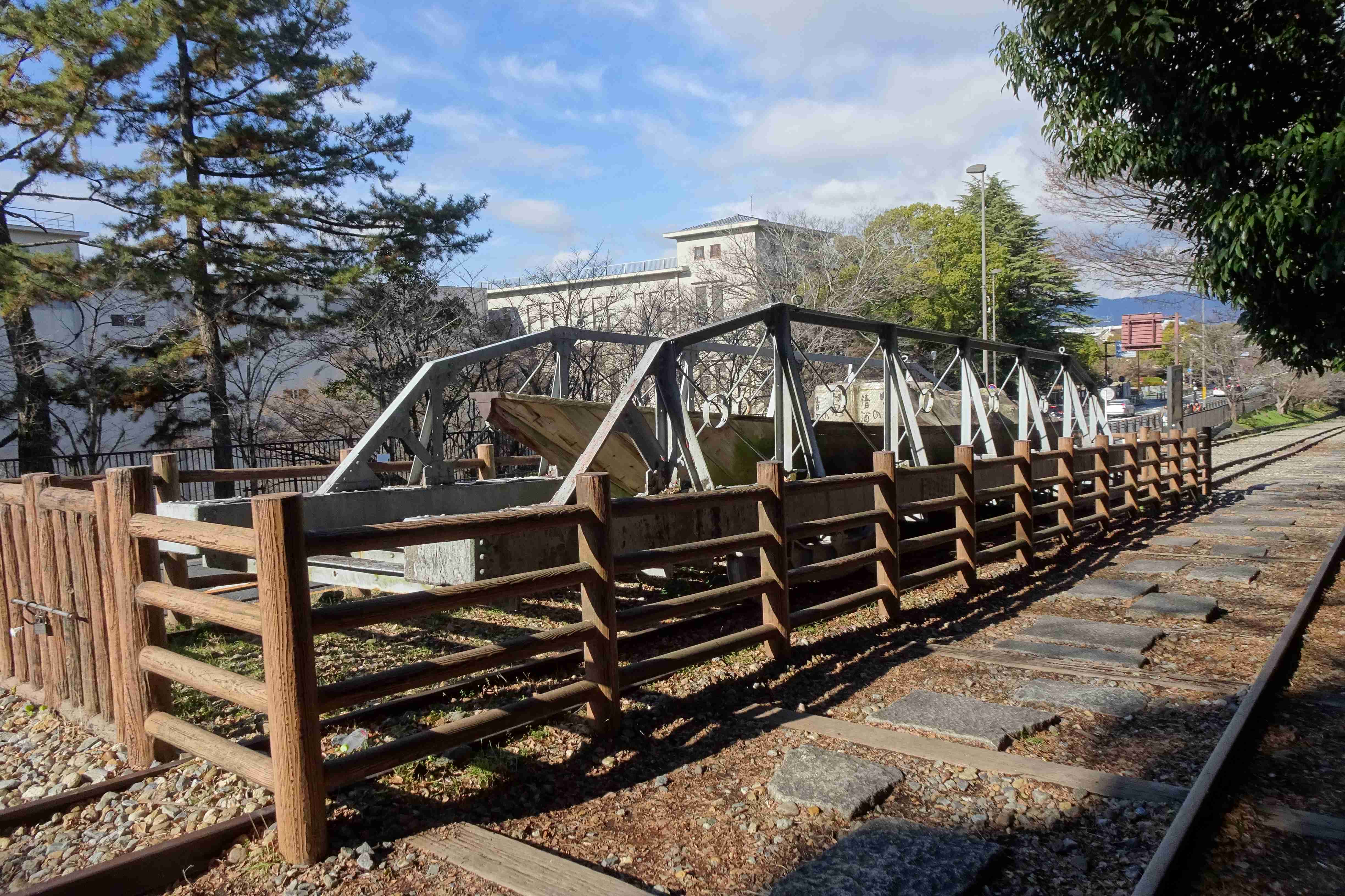 さて、琵琶湖疎水から切り離された舟は、線路の上を荷台に載せて下の琵琶湖疎水まで運ばれます。