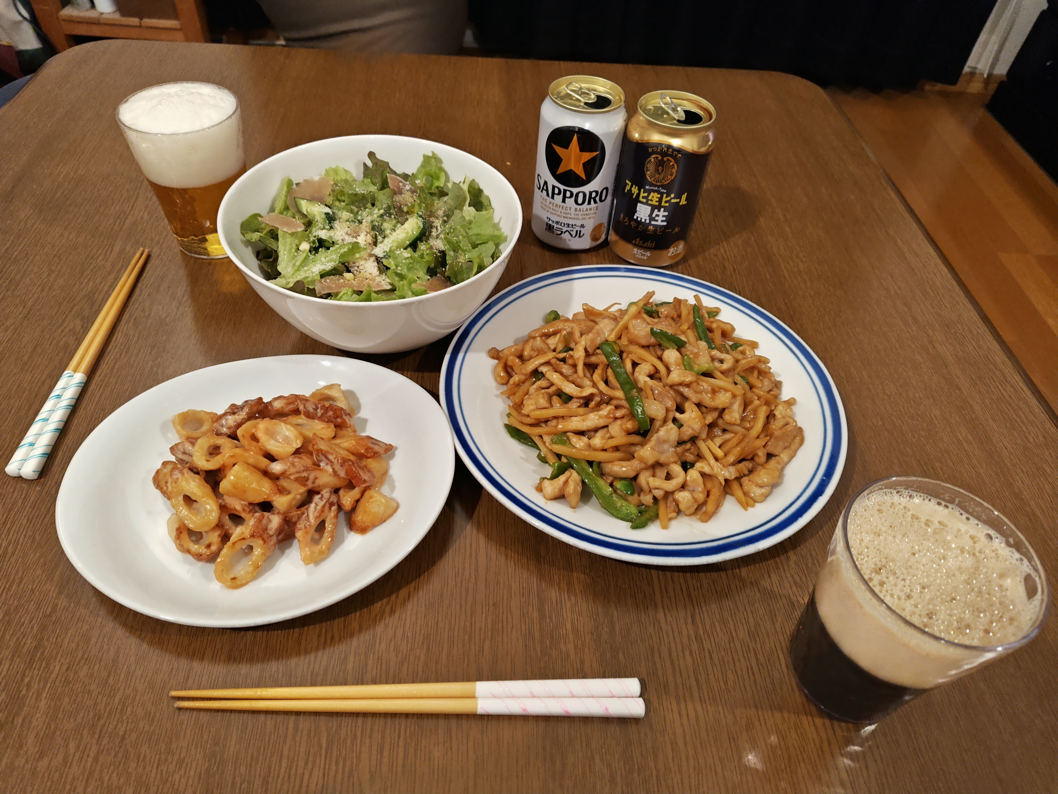 トップ > ヱビスフォト > グルメ・料理 > ある日の夕食〈263〉 白い耳とピンクの肉球 2026/03/07 20:57 ある日の夕食〈263〉 青椒肉絲🫑🐷 竹輪マヨ サニーレタス・キュウリ・生ハムのサラダ🥗 【お酒】 サッポロ黒ラベル アサヒ生ビール 黒生 老松酒造 大分麦焼酎 いいね 共有する 共有する X facebook LINE リンクをコピー コメントする 0 件の返信 (新着順)