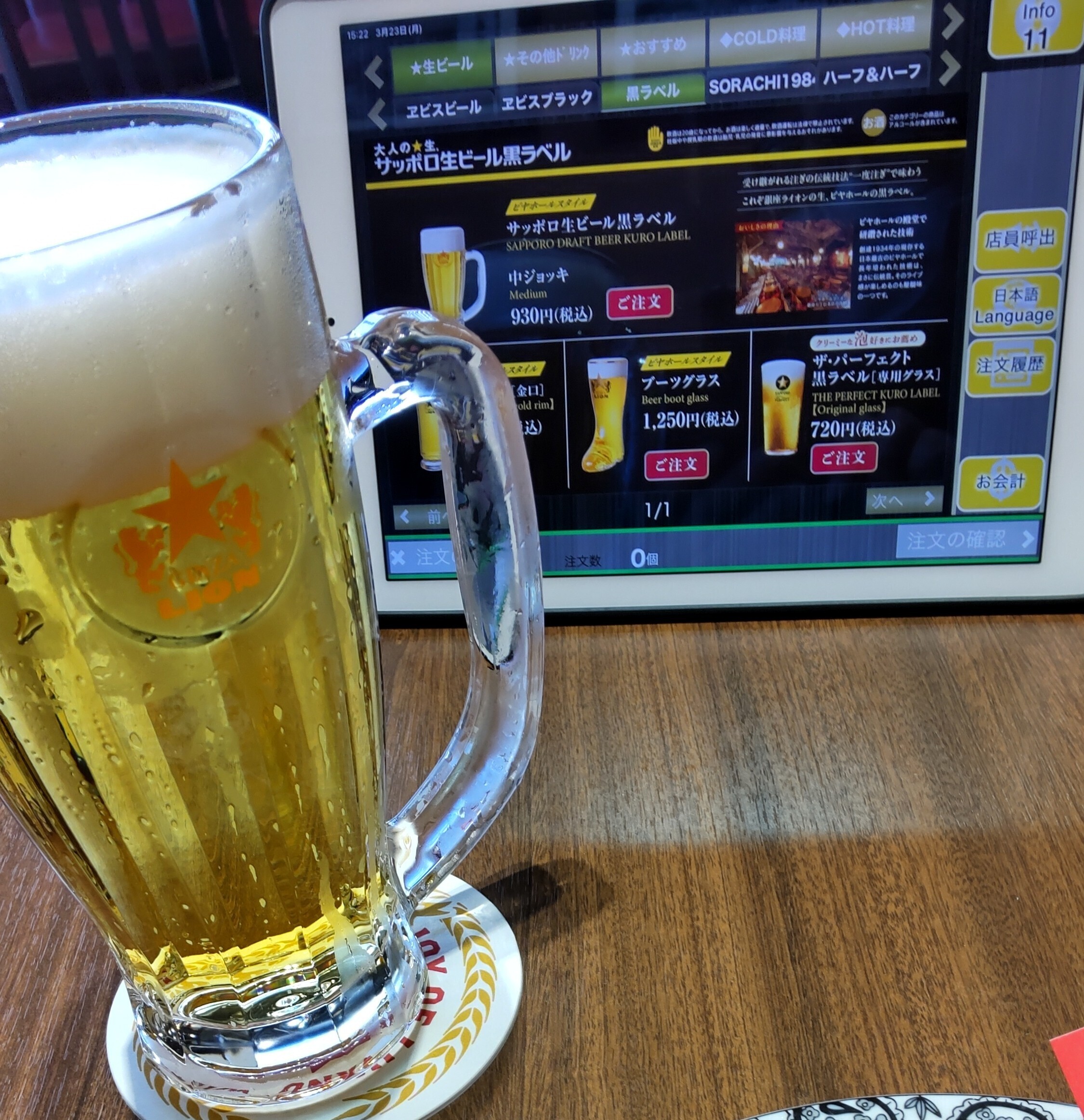 一杯目は金ヱビス、ここの銀座ライオンLEOでもこのままおいていてくれたらいいな。
