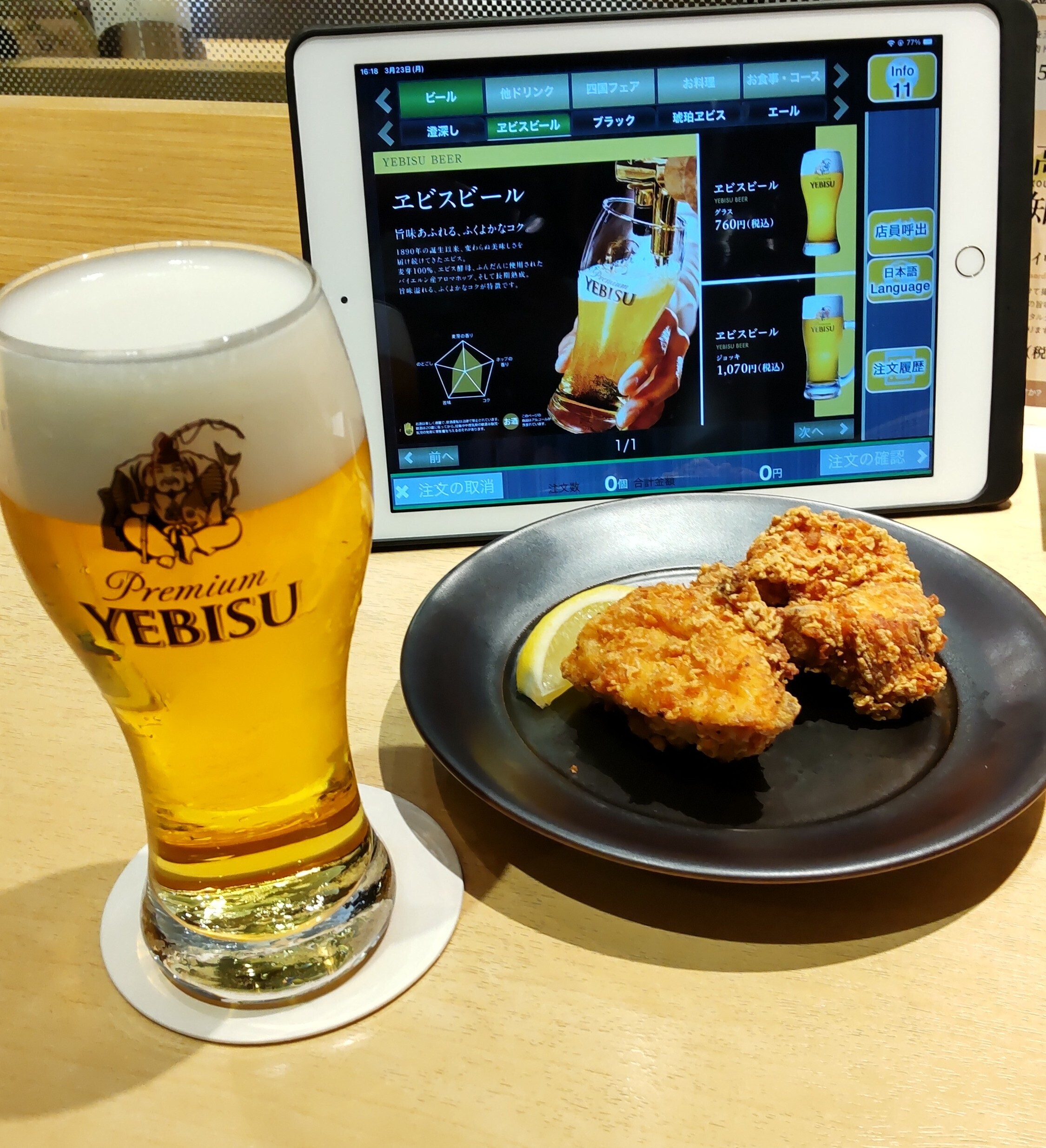 ヱビスバーでも金ヱビスでスタート。