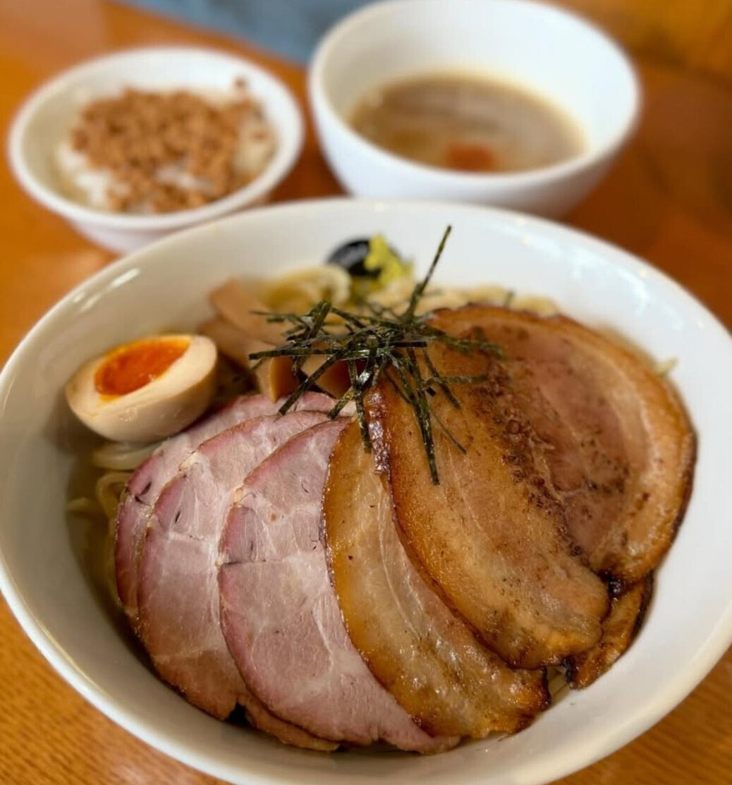 もちろん季節限定の名古屋コーチンのつけそば、つけそば肉盛り麺屋大盛りで…!🥰&そぼろご飯!