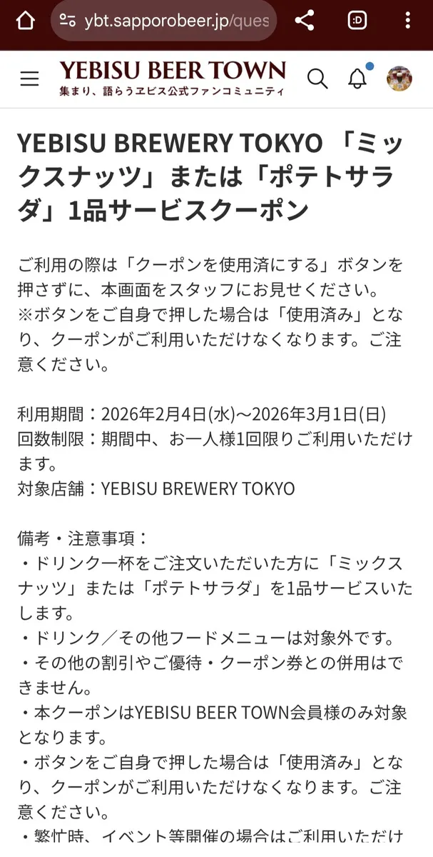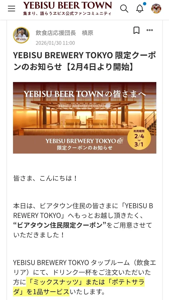 トップ > ヱビスフォト > YEBISU BREWERY TOKYO > YEBISU BREWERY TOKYO✨🍻🎶 丸くなるな、★星になれ。 2026/02/05 16:53 YEBISU BREWERY TOKYO✨🍻🎶 本日のビールは千葉工場のヱビスビール🍺山田裕貴さんサイン入りジャケット有友さんではないけど、作業してました🍺クーポン券使用しに行きました🍺 400円のミックスナッツか500円のポテトサラダが選べるとのことで、往復の交通費が416円なので、ポテトサラダにしました😅 久しぶりのステンレスマグカップで飲みたくなったので、インフィニティブラックにしました🍺 いいね 共有する 共有する X facebook LINE リンクをコピー コメントする 1 件の返信 (新着順) ミュートしたユーザーの投稿です。 投稿を表示 ノエルママ 2026/02/05 19:00 私も… ポテサラにしようと思います🍻 お値段が🤣 いいね 返信する