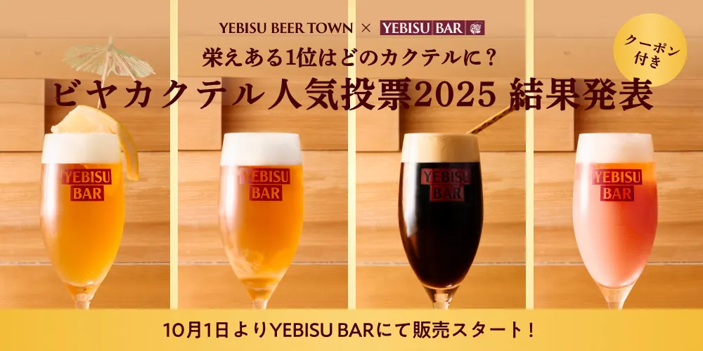 今回1位になったビヤカクテルに使える半額クーポンを、YEBISU BEER TOWNの住民の皆さまにプレゼントいたします!