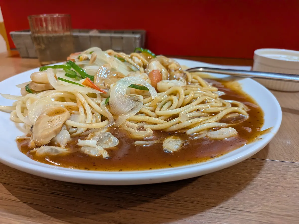 胡椒タップリのあんかけソースは癖になります‼️😊この柔らかい独特の太麺も食べ応えあります!