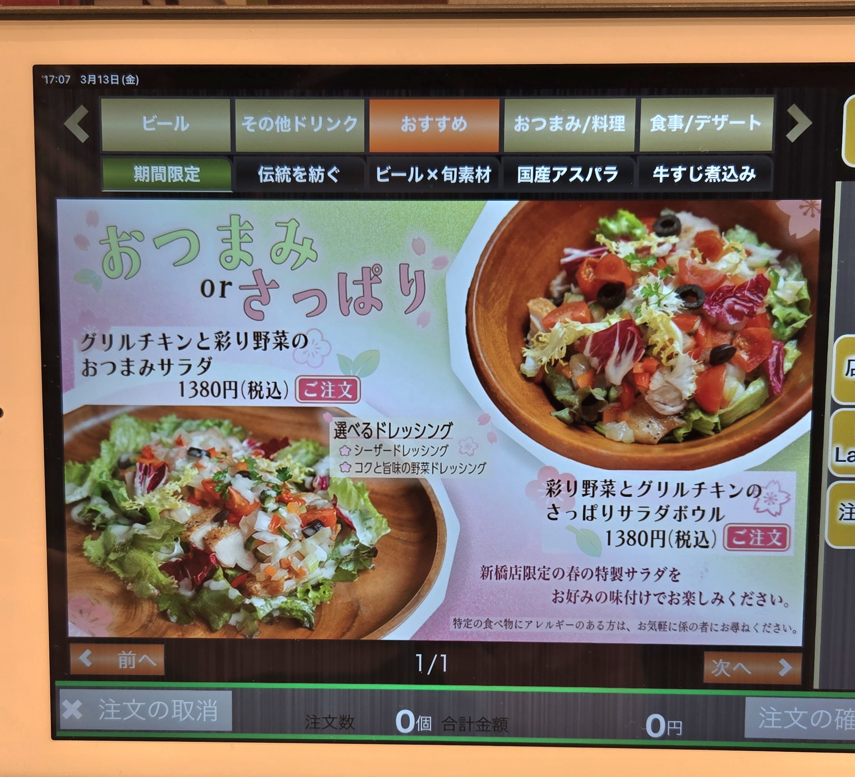 銀座ライオン新橋店限定3月度メニュー🥗