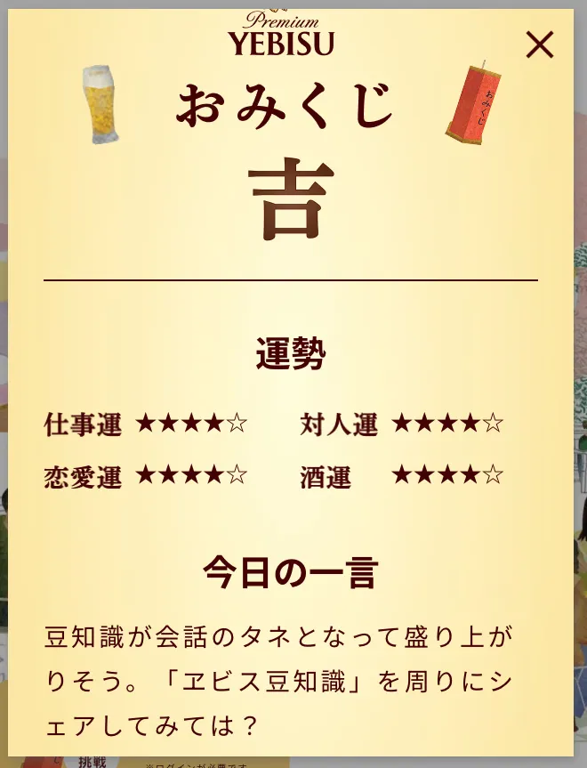 吉でした。私の周りには驚くほどビールを飲む人が少ないので、ヱビス豆知識は私の中にとどめておきたいと思います。