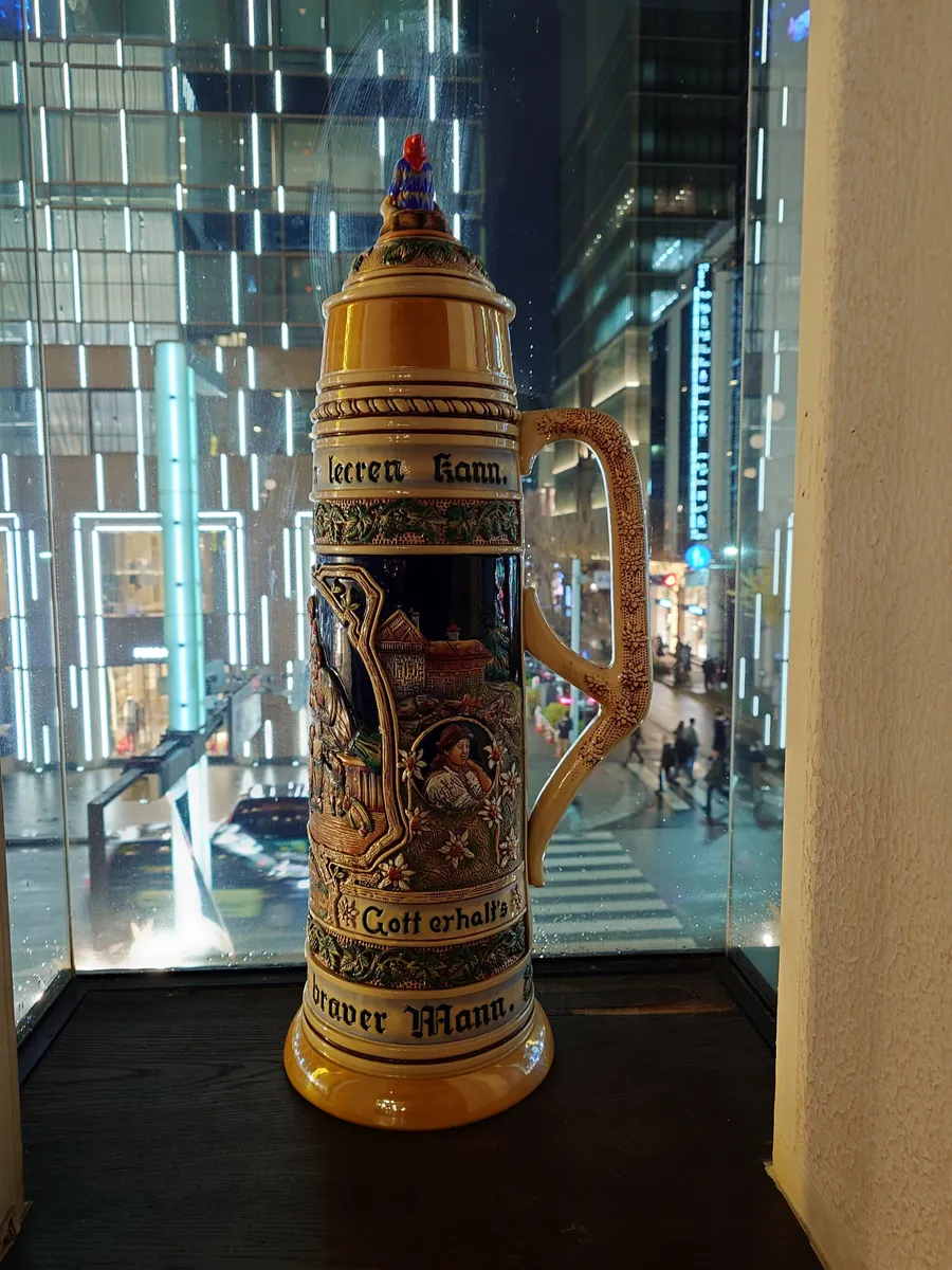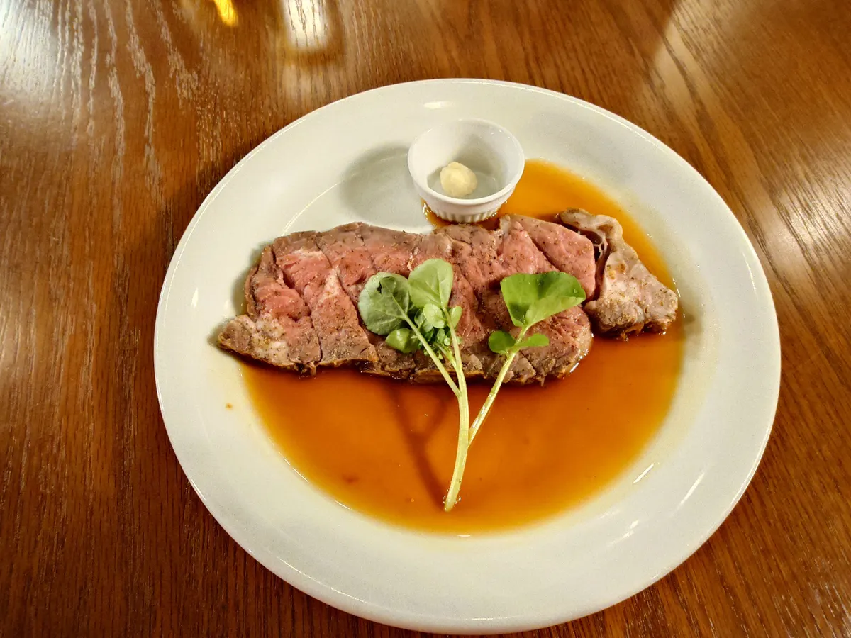でも雰囲気ある店がクリスマス🎄の飾り付けと、スタッフ達全員がクリスマスグッズを身に付けての演出、そして特等席への案内なら当店でも良いかと思い、毎度注文するエーデルピルスのジョッキ2杯と、ローストビーフを注文🍺🍺🥩