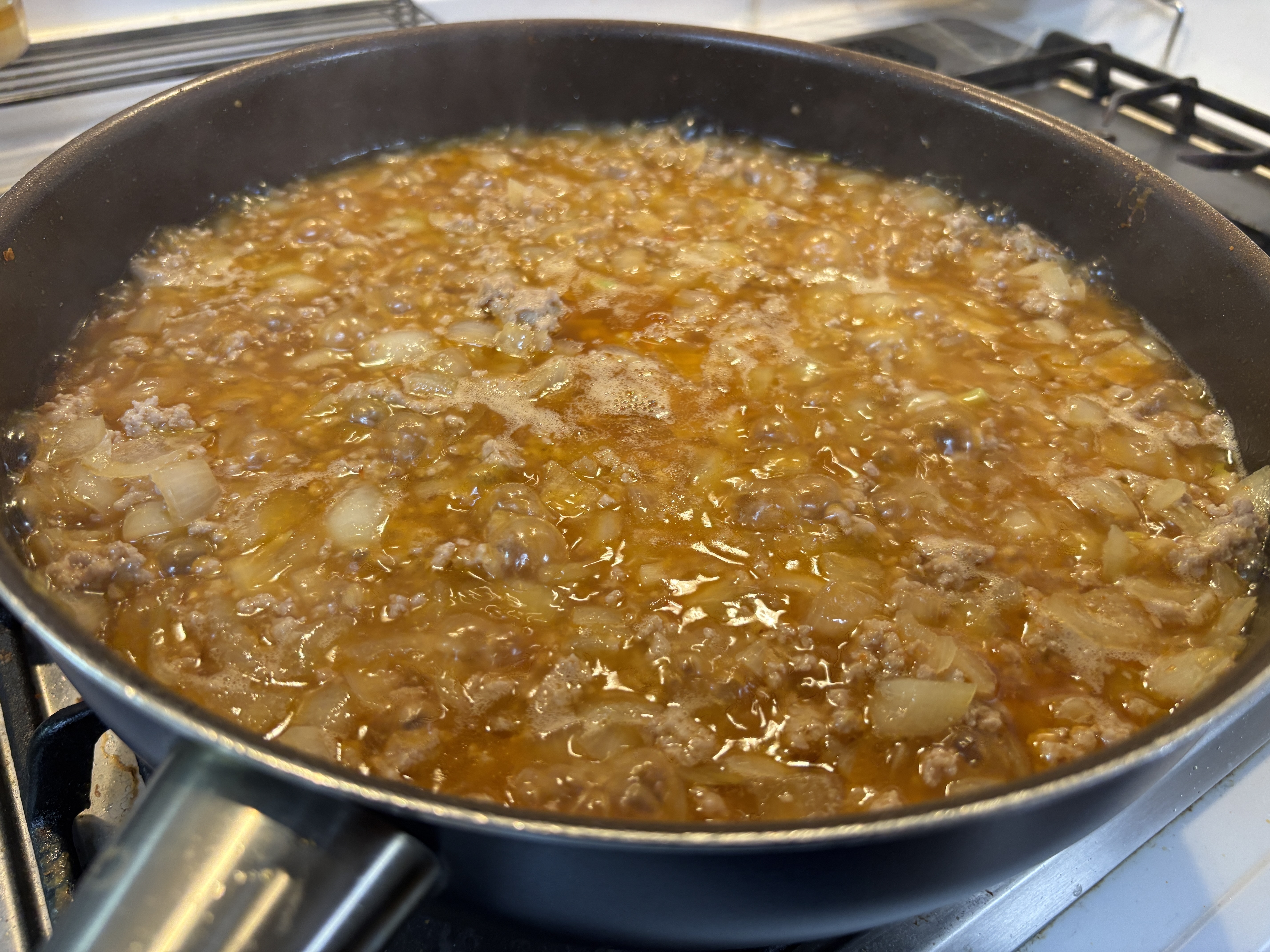 昨日ひき肉を買ってあったので、それで何をしようと考えて、考えて、考えて……